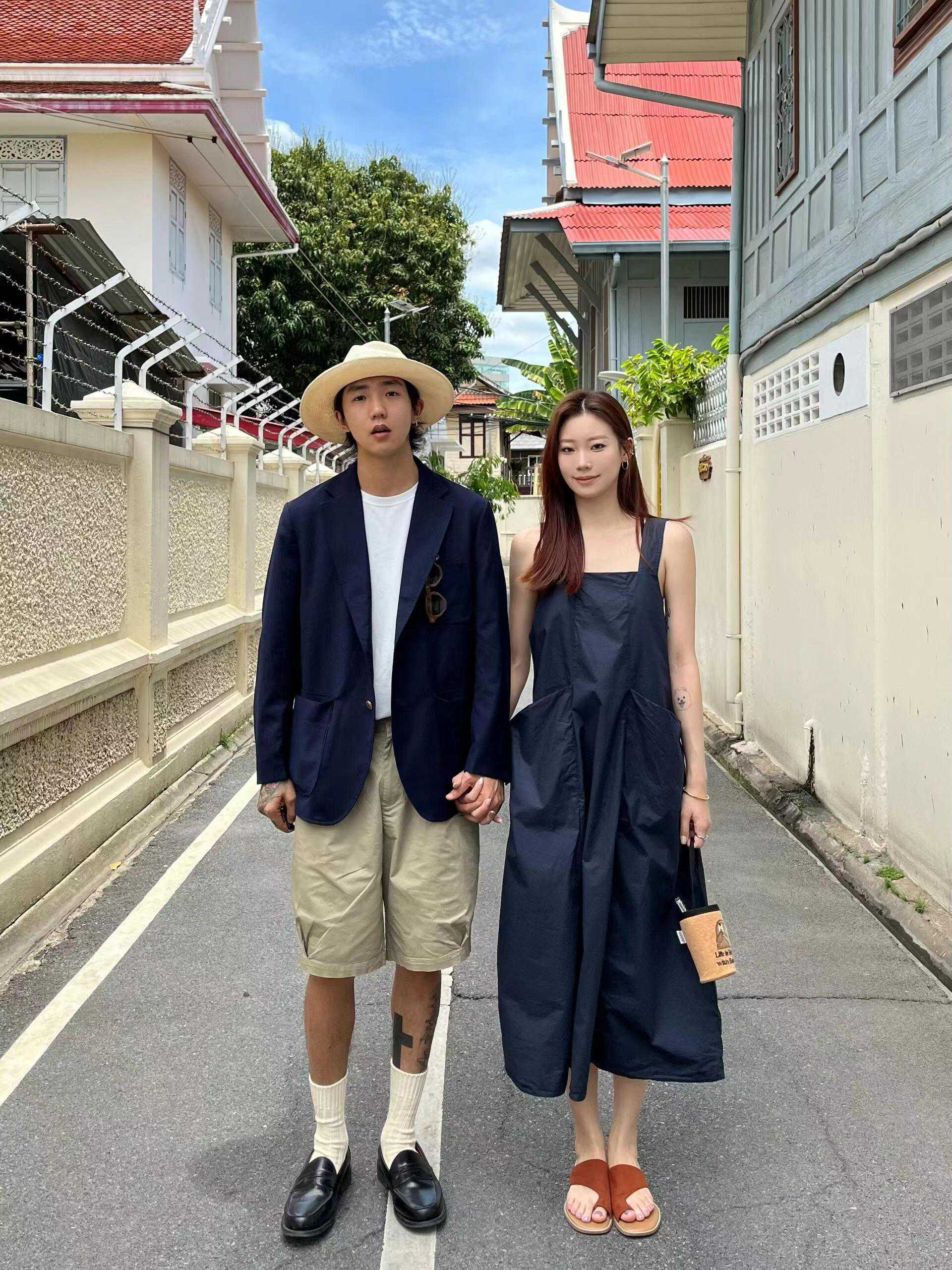 想象一下,在温暖的夏日黄昏,一对情侣手牵手漫步在街头。男生身着深蓝色的牛仔外套,上面巧妙地绣着女生名字的首字母,而女生则穿着与男生外套同色系的连衣裙,裙摆随着她的步伐轻轻摆动。这样的穿搭不仅强化了他们的情侣身份,更为这份浪漫时光增添了一抹独特的色彩。