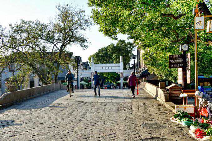 同里古镇门票100元整,里面含9个景点联票。学生、老人都有优惠,如果住在镇里的客栈,都可以代购85元的门票。每天的下午5点以后到第二天早上8点前,同里古镇是不用买票的。我们就是天平山赏枫叶结束后,公交4路换地铁1号线和4号线,到同里站9号口出站,换725路同里古牌楼站下,步行到古镇牌楼。