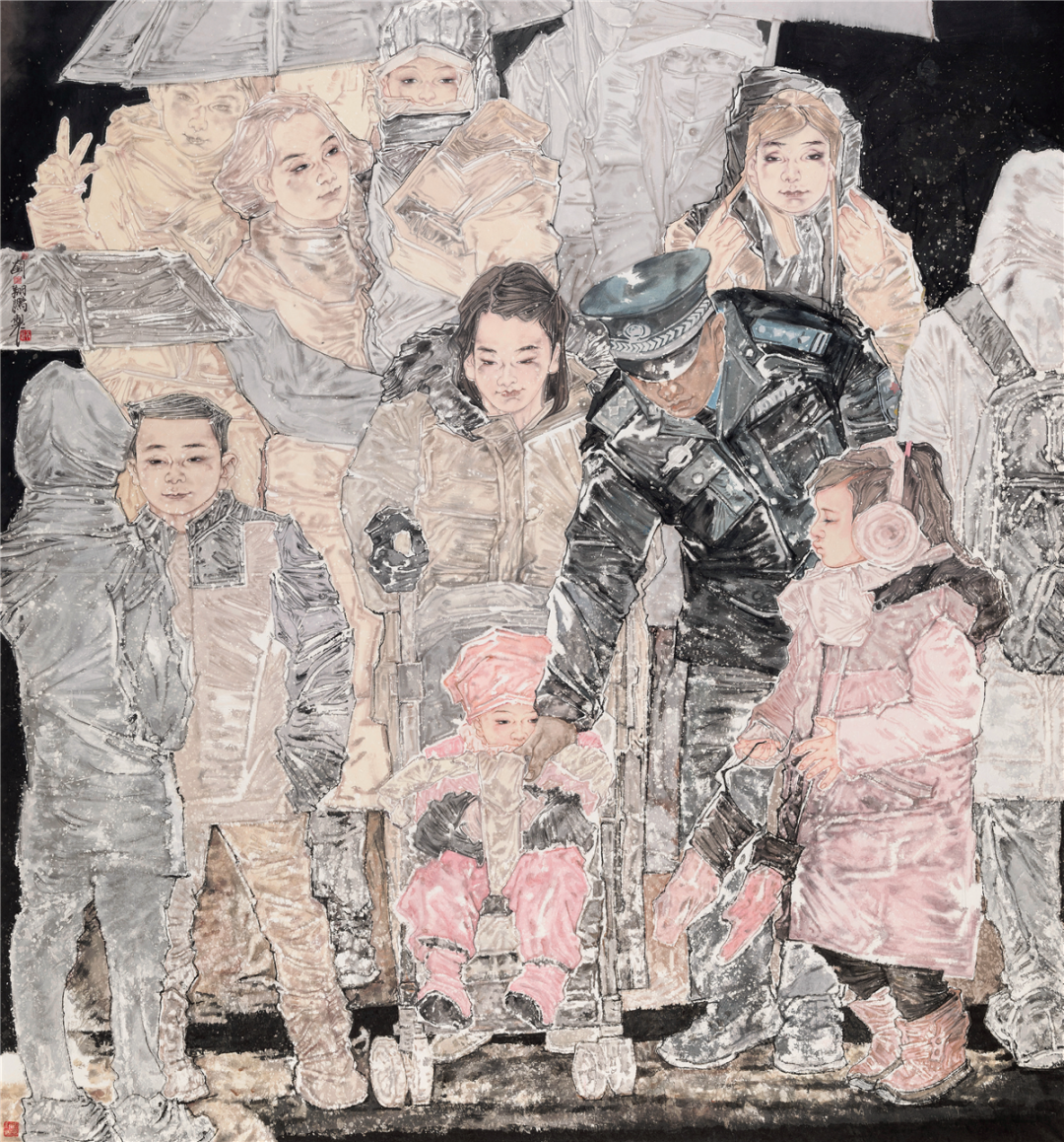 刘翔鹏警民一家亲中国画200cm×180cm山东