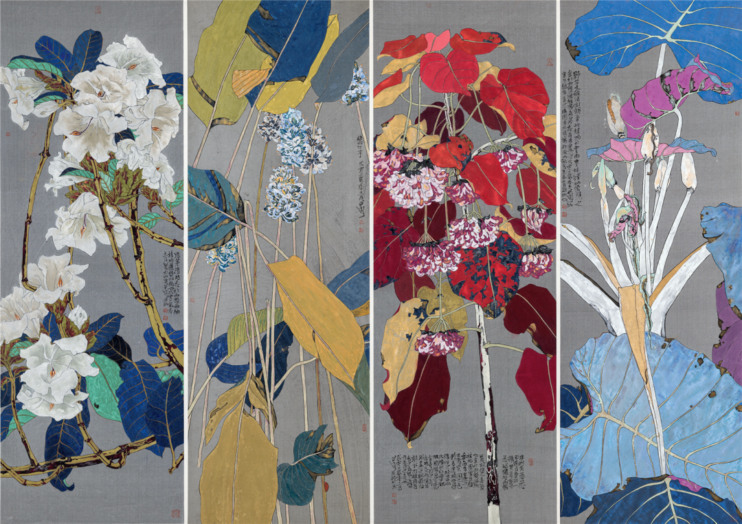 郭子良热带奇花中国画140cm×50cm×4北京