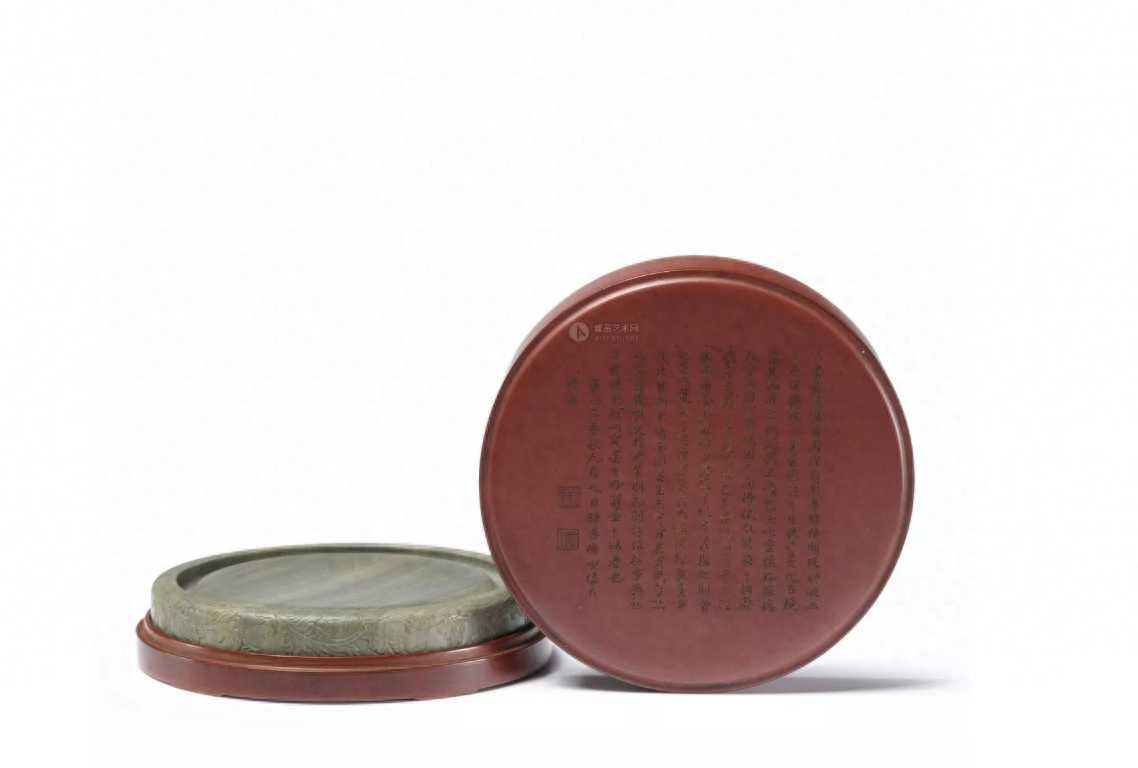 清雍正朱漆暗刻填金「石砚赋」砚盒连松花石草叶纹砚成交价:RMB1,548,400香港蘇富比2014年春季拍卖会『抱一斋珍藏中国漆器(一)』