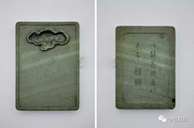 清乾隆御制松花石如意纹长方砚成交价:RMB1,709,140香港蘇富比2009秋季拍卖会『水松石山房藏珍玩专场』