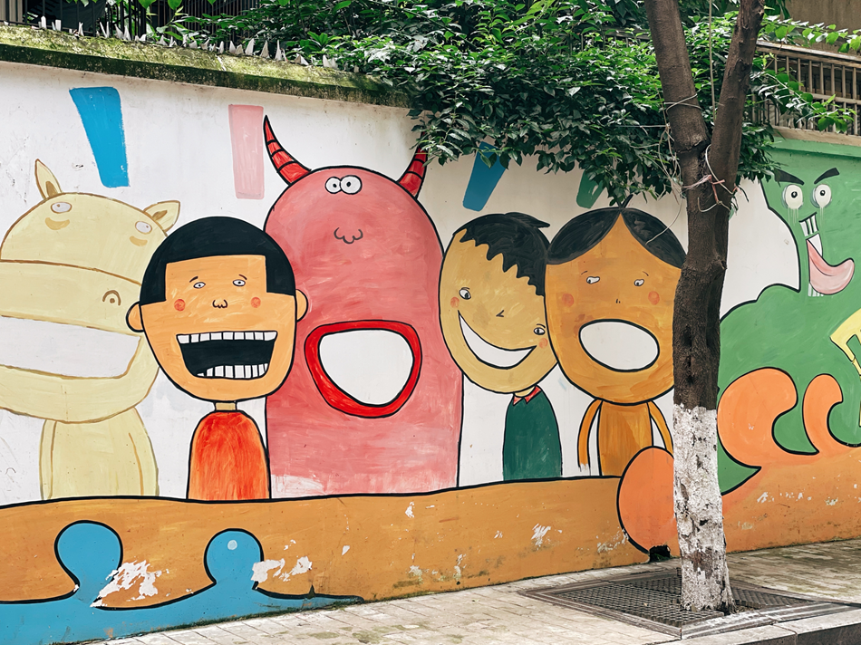 不得不佩服涂鸦创作者的想象力,这里还有与成都悠闲生活息息相关的元素。