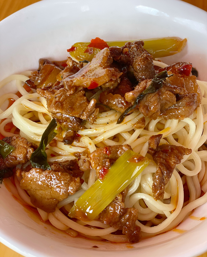 面和转以后,肉臊子跟豇豆颗颗都很巴味