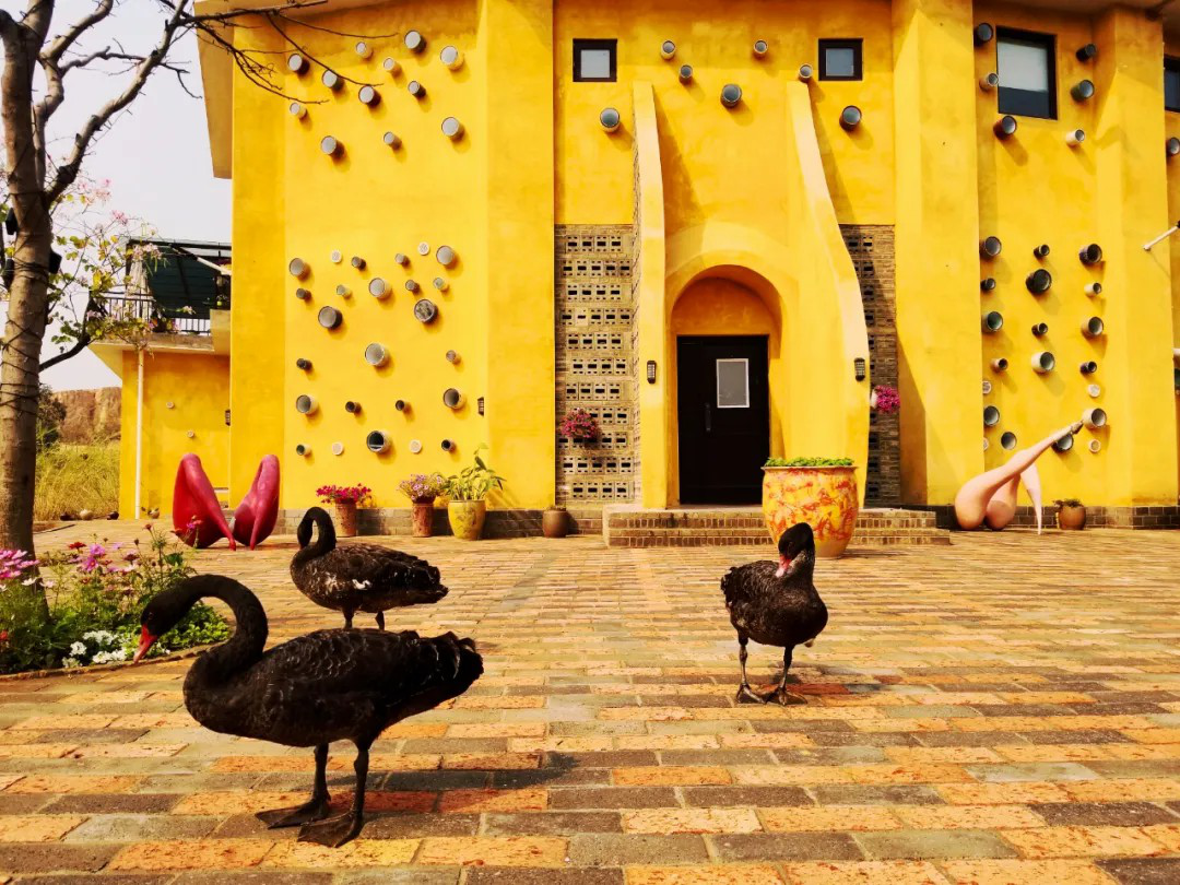 东风韵满山成片的鲜花,在绿波花海中,与矗立着一座座红砖砌成的酒瓶形状的城堡建筑,形成了柔美与坚硬的艺术组合。初步建成时就成了网红打卡地!