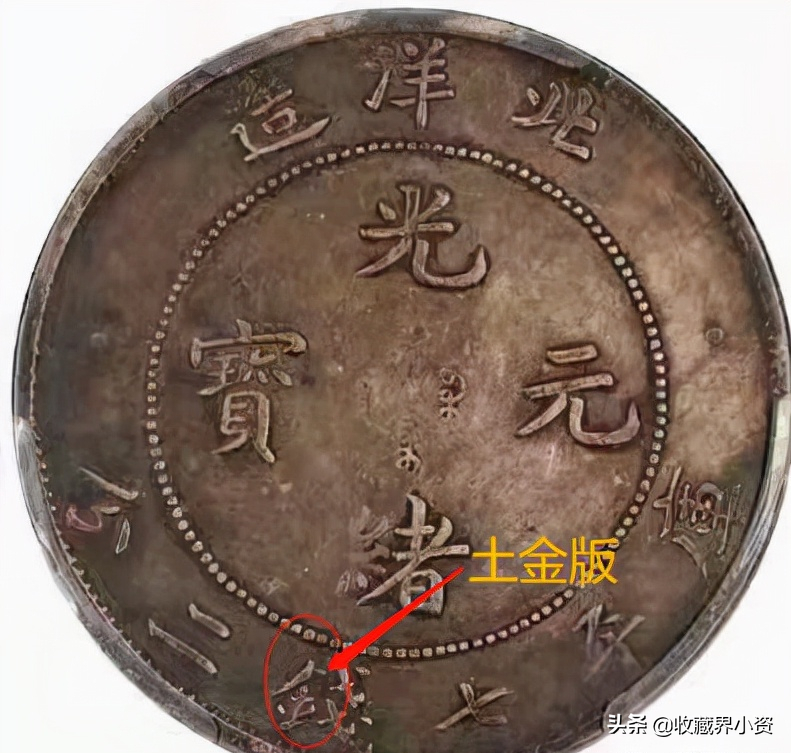 6、土金版:“钅”字里面的“王”字缺了上面一横,成了一个“土”,这一版龙尾也被修短,所以也称为短尾土金版。
