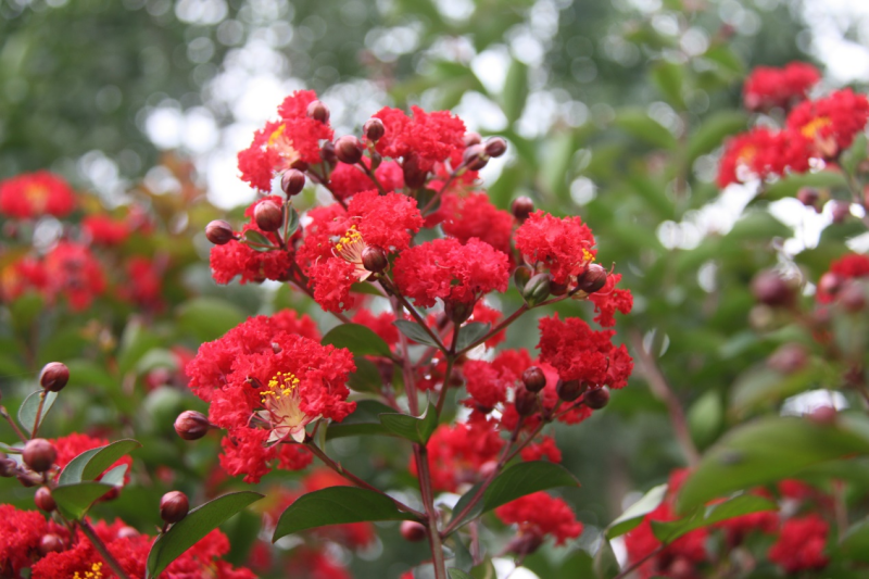 如今,在育种者的不断努力下,通过种间杂种、诱变育种等手段,紫薇花的花色更加丰富多样,现在我们所在的园林绿化中已经有鲜红色的紫薇以及复色花的紫薇品种。