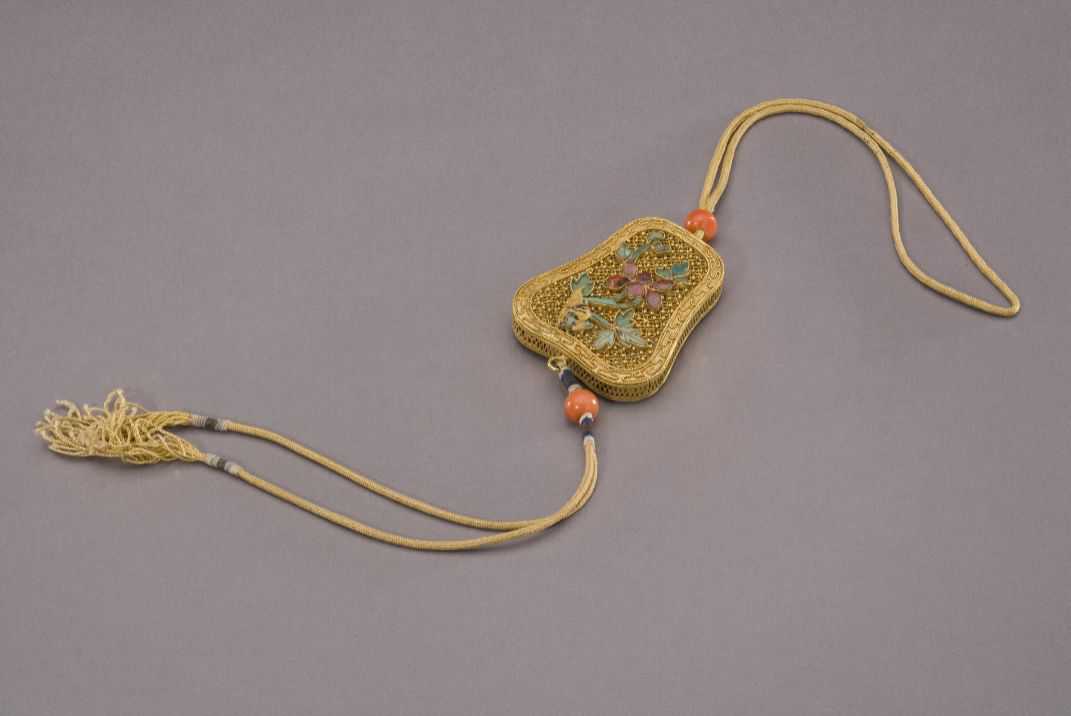 图:金镂花嵌松石翠片香囊