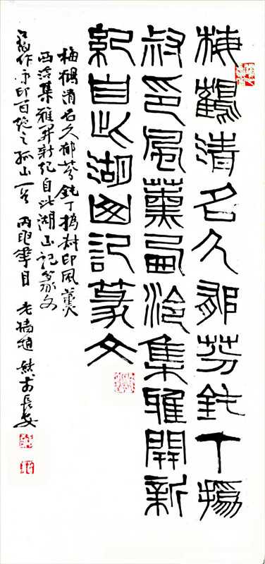 各种书法字体、各种表现形式,在赵熊先生的妙笔下,皆左右逢源,妙手天成。正如行家所指出的,“他不是为写字而写字,而是苦苦地在为心灵的律动寻找表现形式”,“融生命意味、情感、意象于书印”,“表现了他创新的胆识和高雅的趣味”。