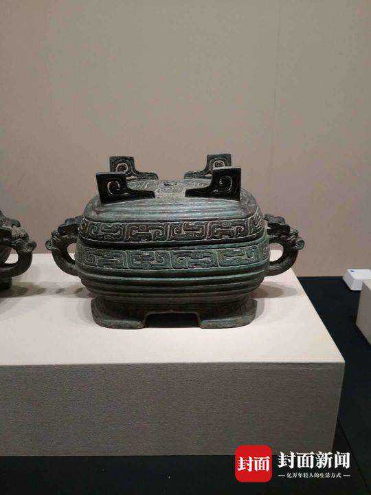 簋(guǐ):铜器铭文作“毁”,相当于如今的大碗,盛饭用,一般为圆腹、侈口、圈足、有二耳。此次展览的簋数量较多,有各种的纹饰,体现了当时人们的审美情趣。
