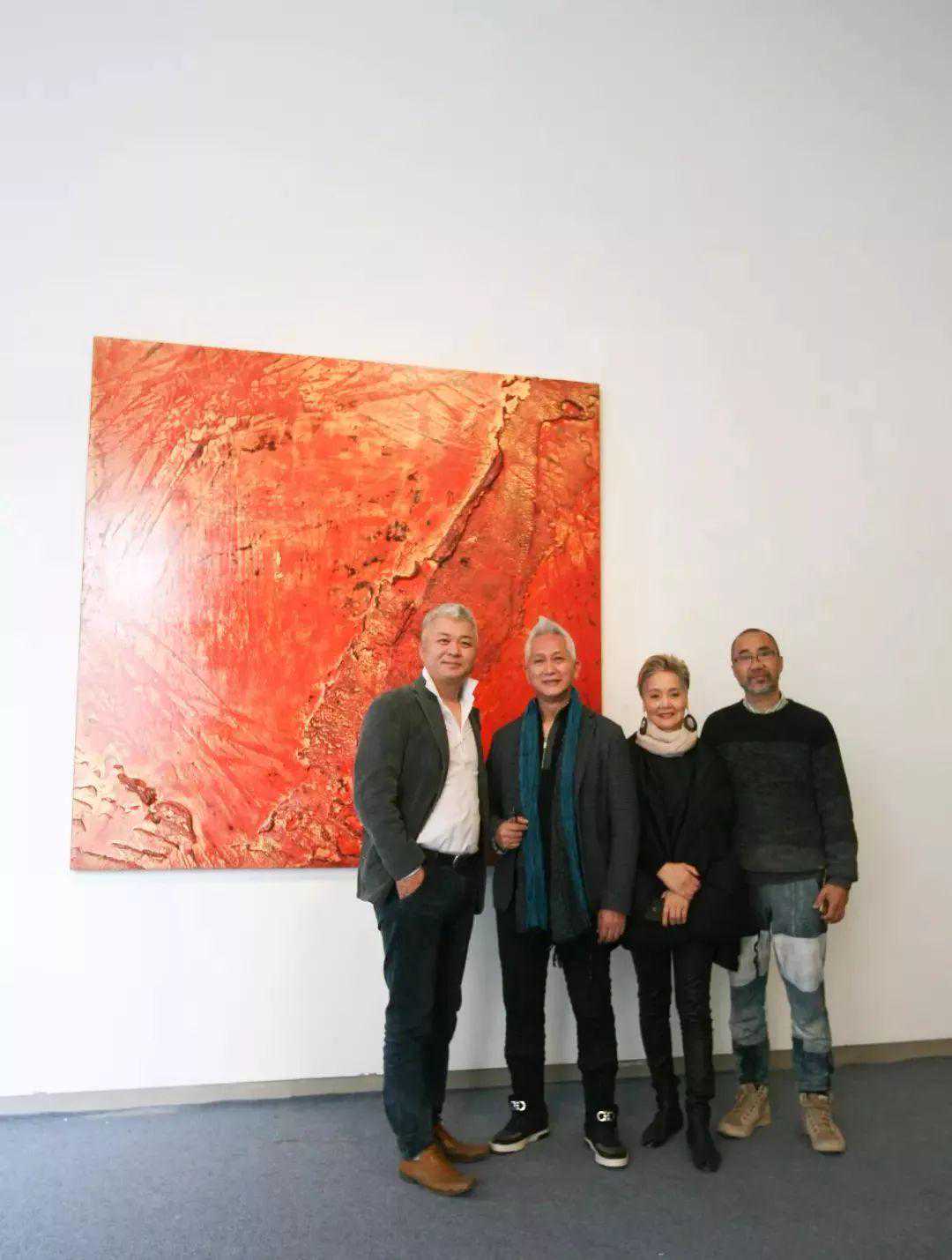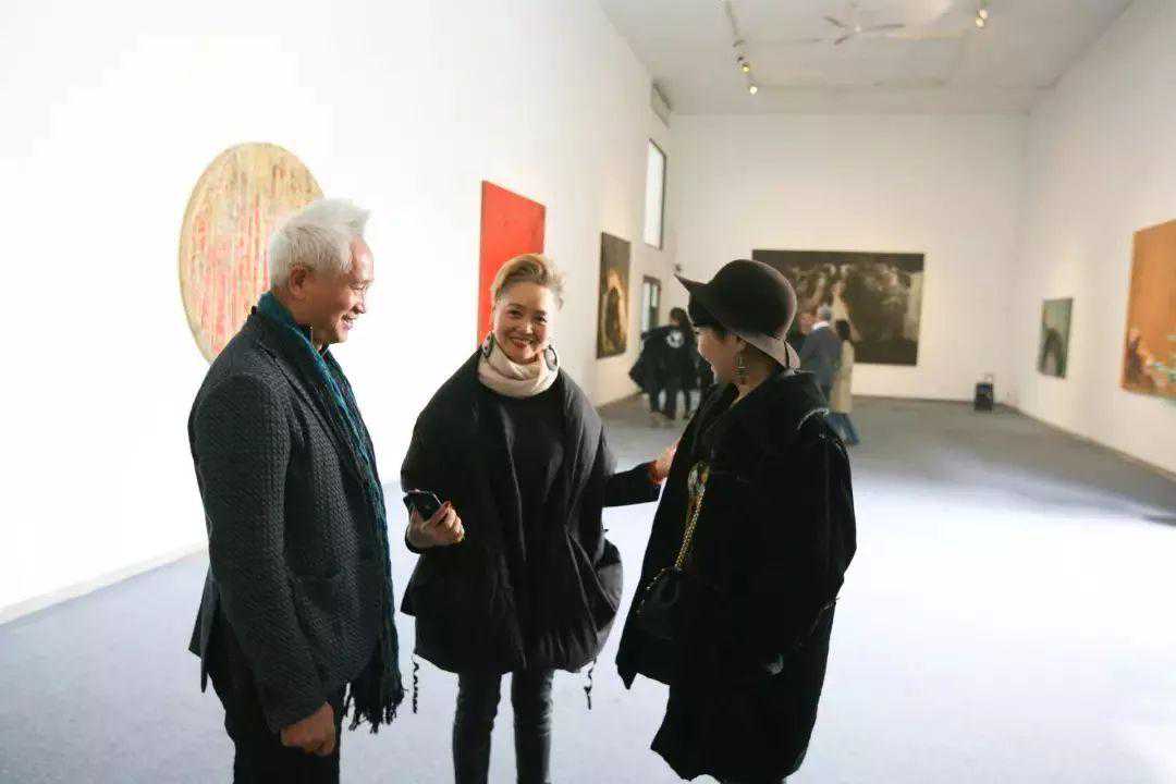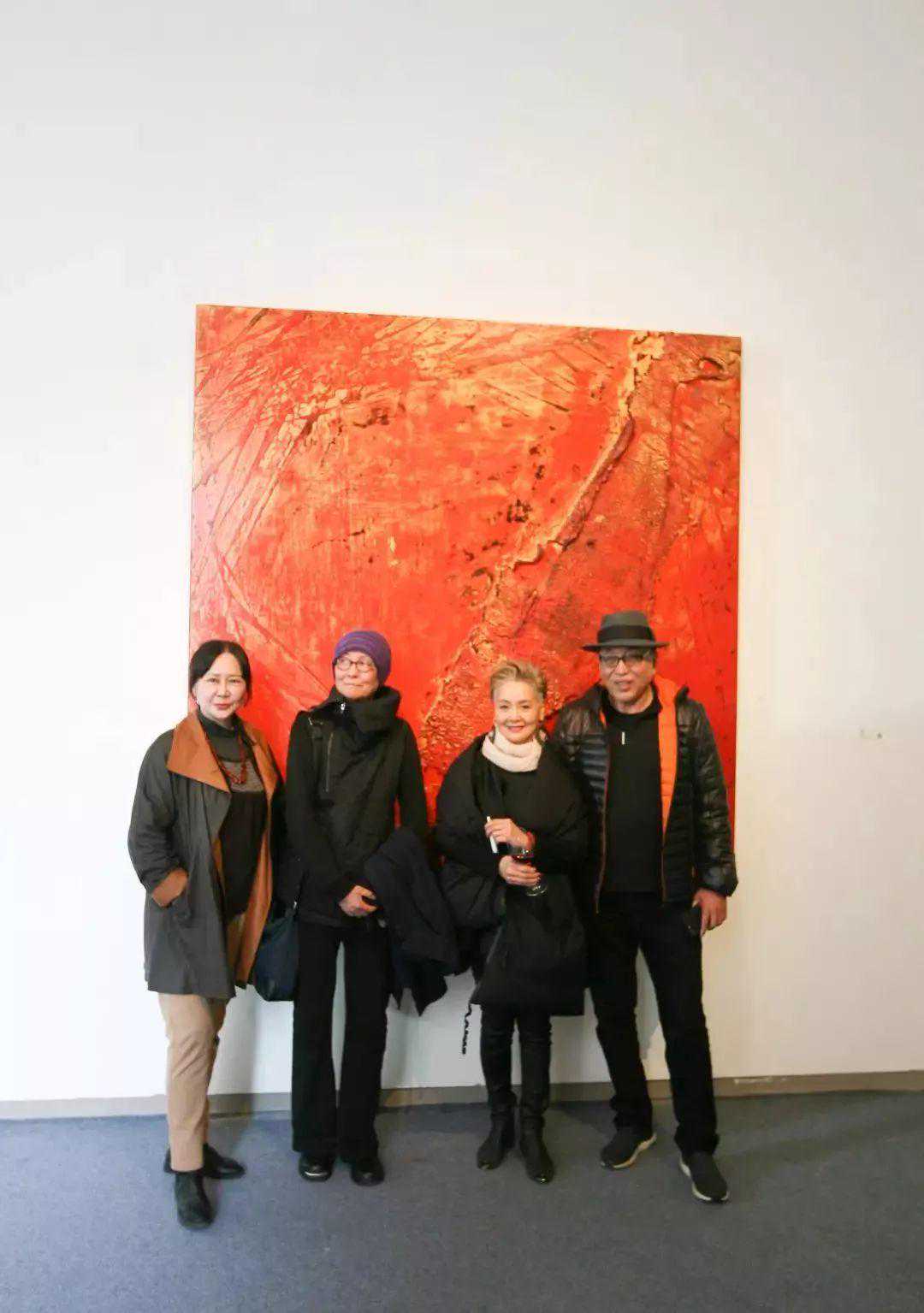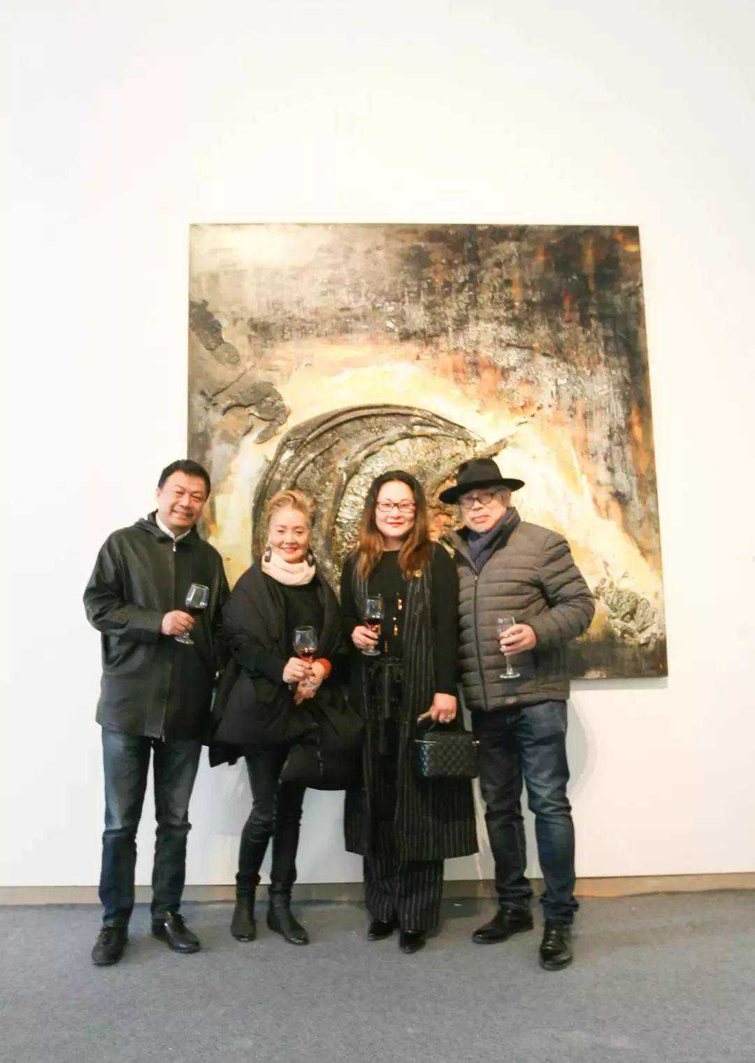 在现场的开幕中,艺术家与观众们分享她创作的心路历程,交流着彼此的艺术心得,艺术沙龙的气息扑面而来,热闹非凡。由于本次展览的作品媒材都是综合材料(岩彩、大漆、红木屑、朱砂等矿物材料),而瞿老师央美进修时的综合材料班里的师弟师妹们也纷纷前来助阵,专业交流自然必不可少。
