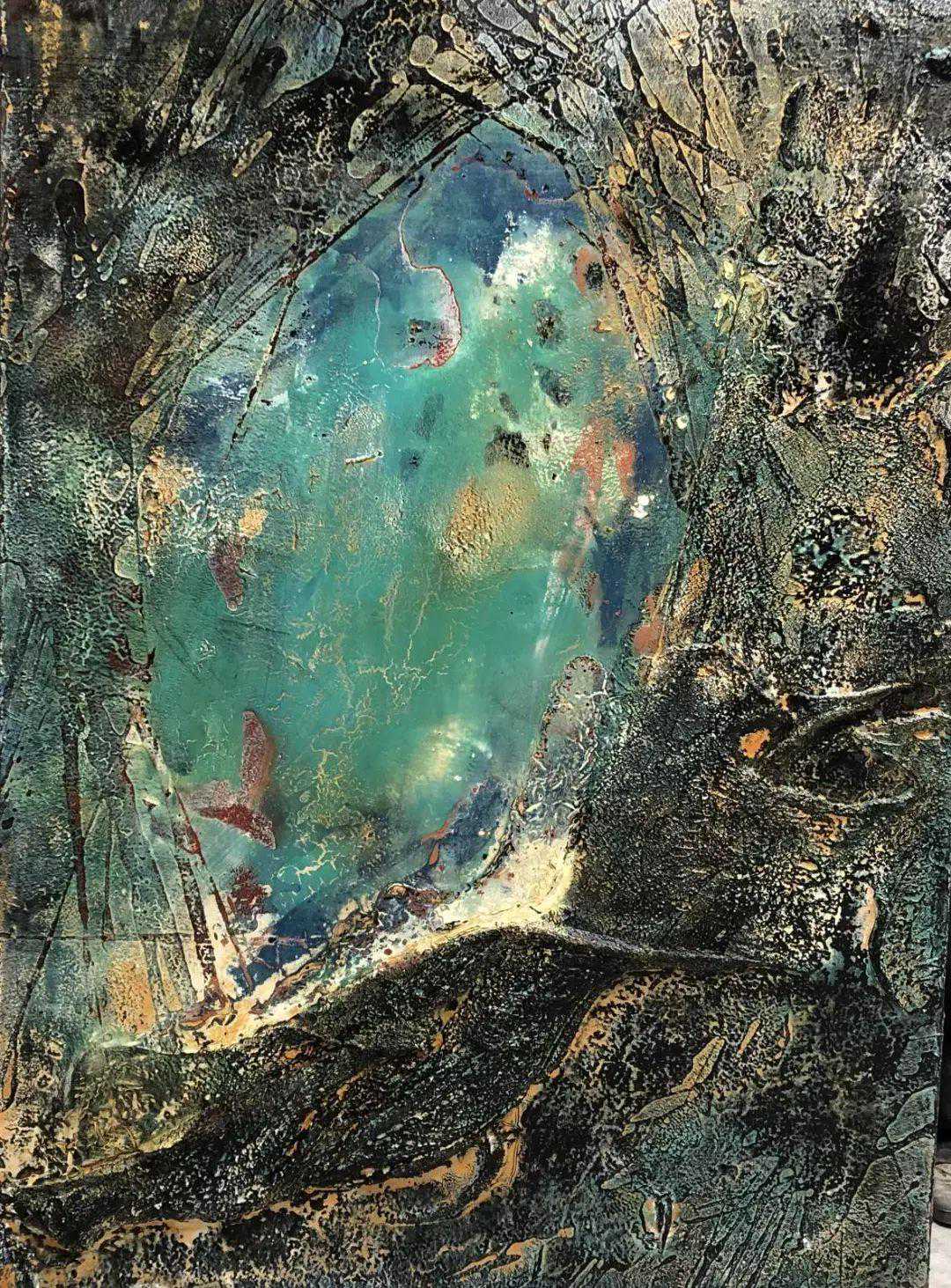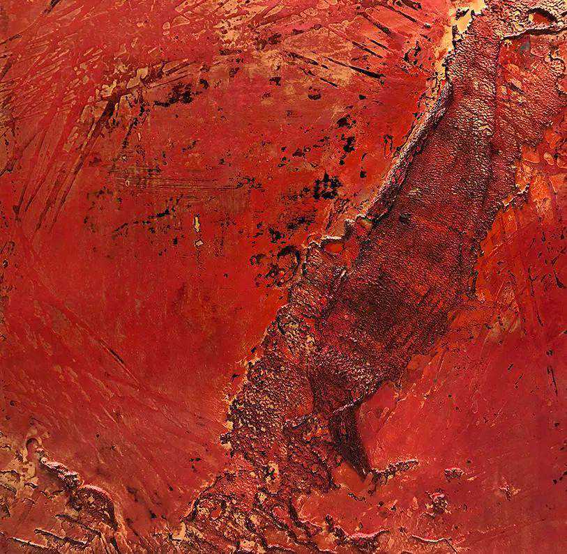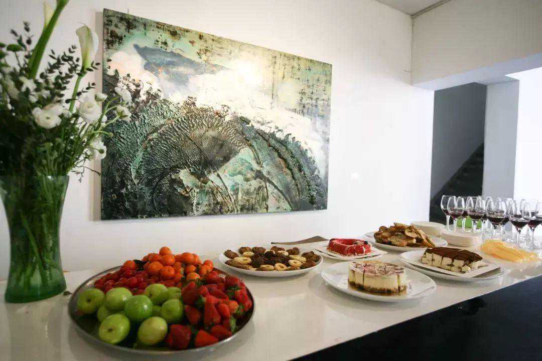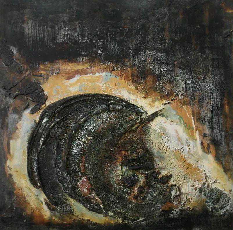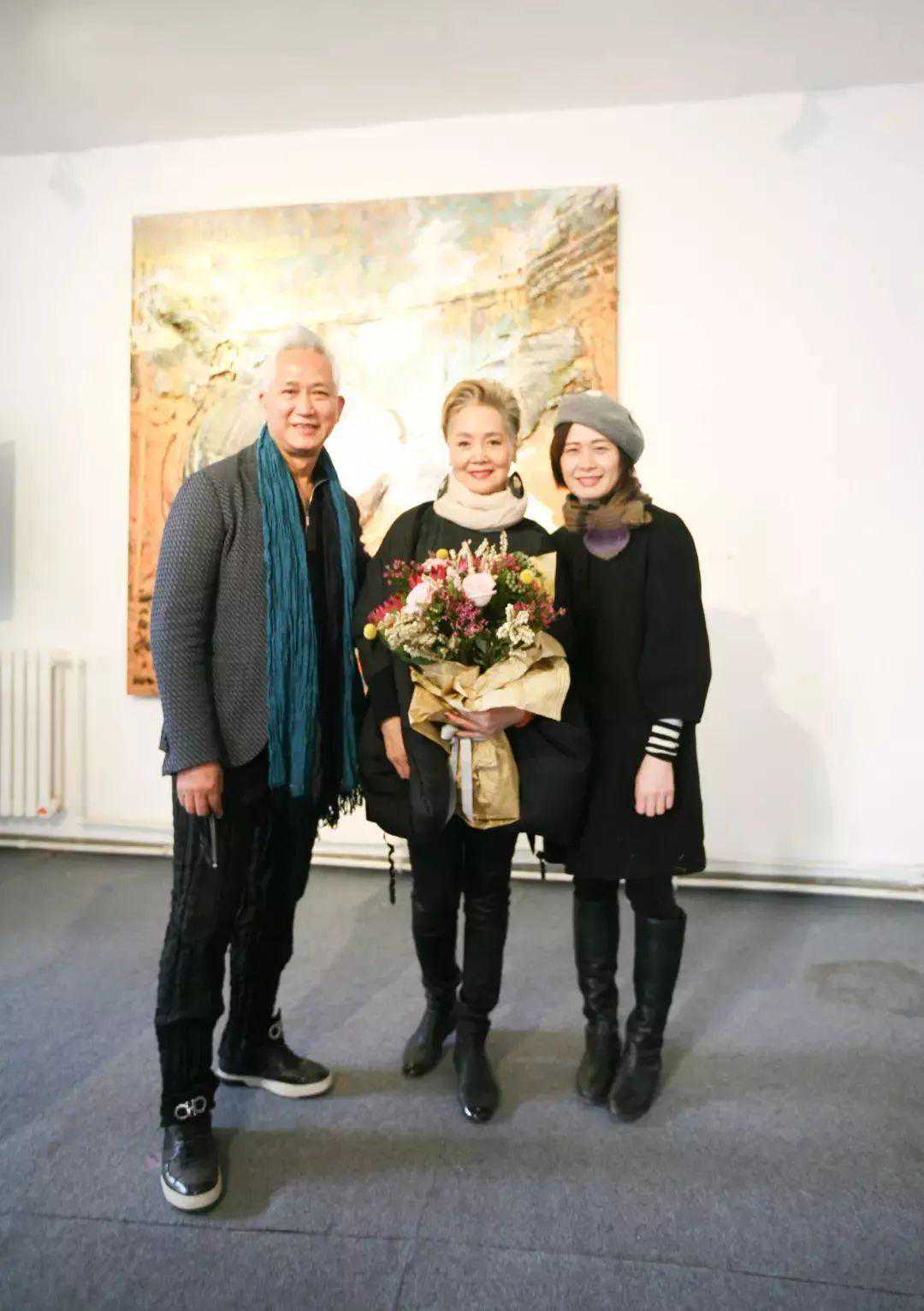 在现场的开幕中,艺术家与观众们分享她创作的心路历程,交流着彼此的艺术心得,艺术沙龙的气息扑面而来,热闹非凡。由于本次展览的作品媒材都是综合材料(岩彩、大漆、红木屑、朱砂等矿物材料),而瞿老师央美进修时的综合材料班里的师弟师妹们也纷纷前来助阵,专业交流自然必不可少。