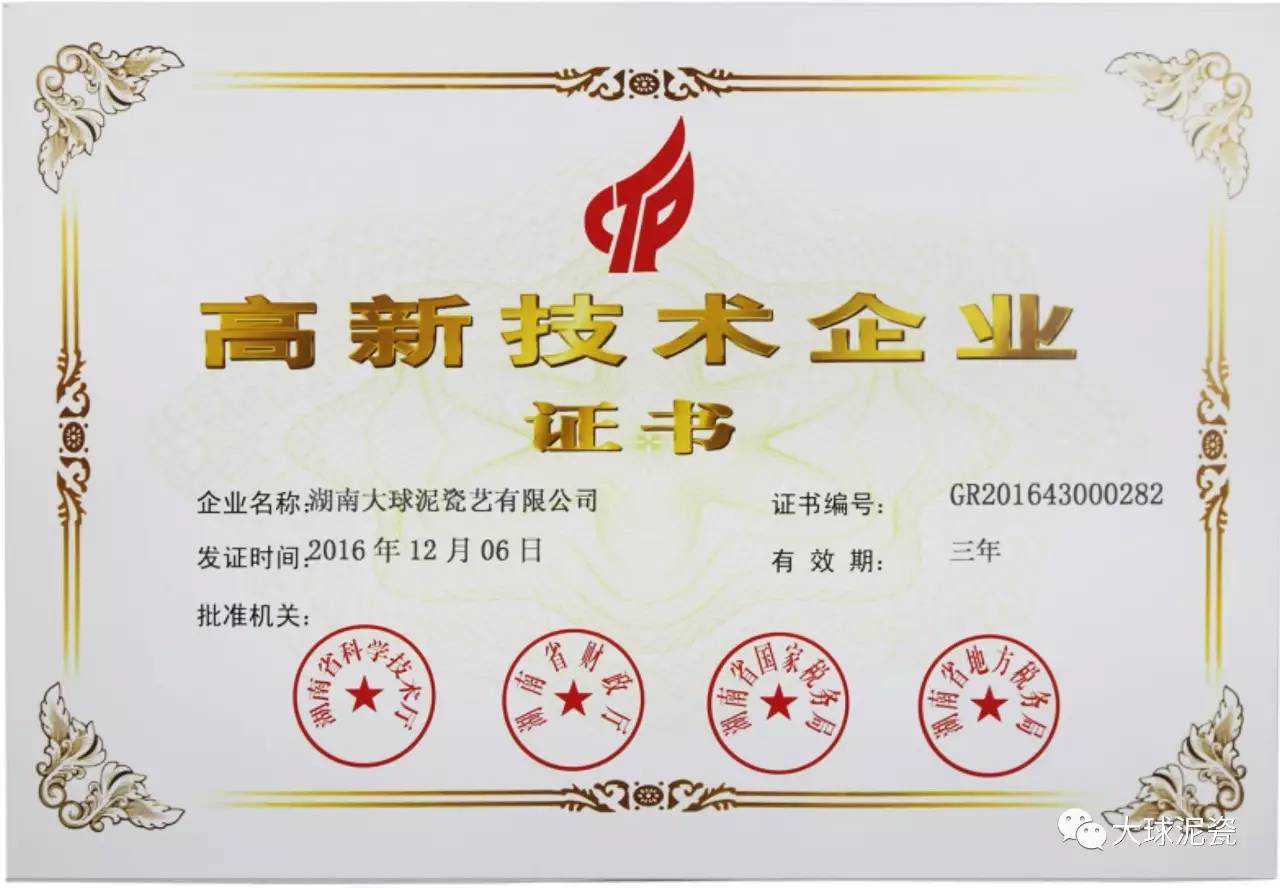 A大球泥瓷艺公司制定的企业标准,现已上升为地方标准,正在申报国家标准。