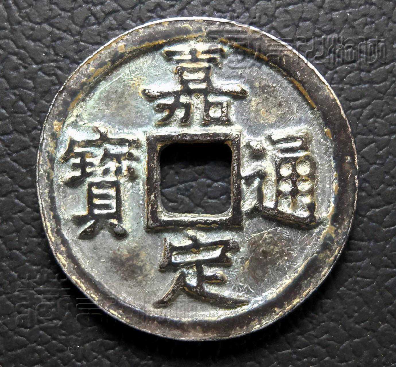 嘉定通宝,南宋宁宗赵扩嘉定年间(公元1208—1224年)之铸币。其形制有小平,折二铜钱及折二,折五铁钱等,背文纪年纪监,钱文楷书,直读。总体上史铸有量,遗存也较丰,主要为铁钱,铜钱稀罕。