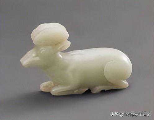 02-6-6、头上出现花朵形的鹿角,又称之为“肿骨鹿”。造型以匍匐状为多,姿态有回首、前视、缩颈三种,这是唐代玉鹿的特殊风格。