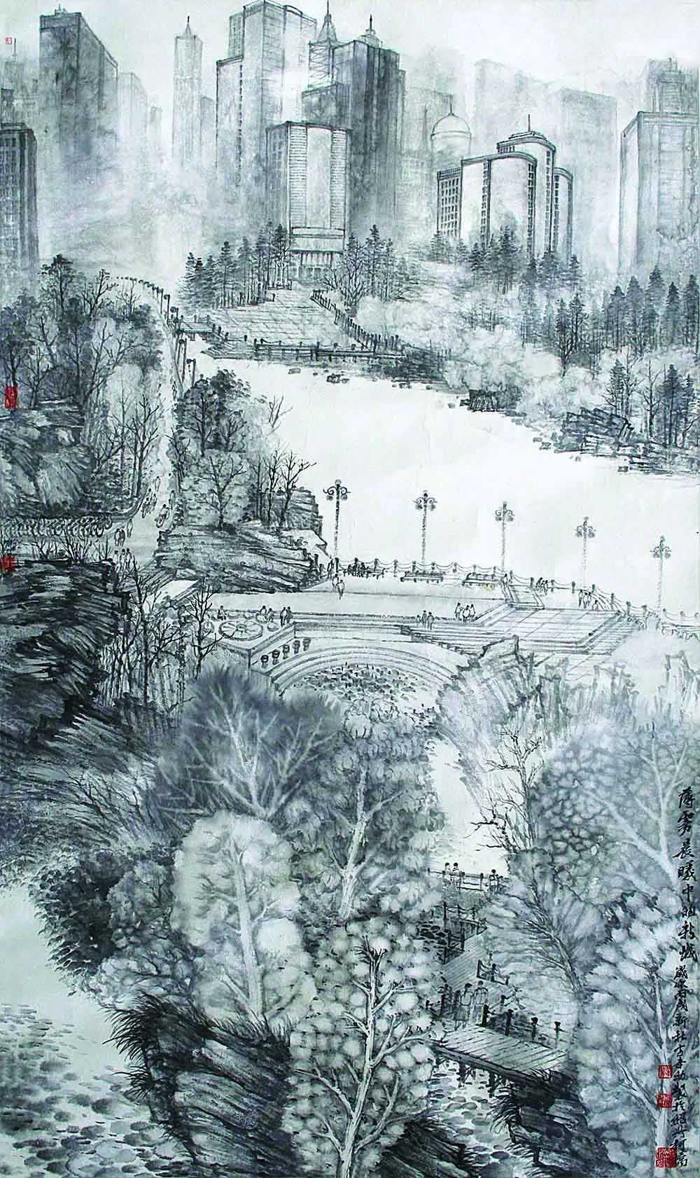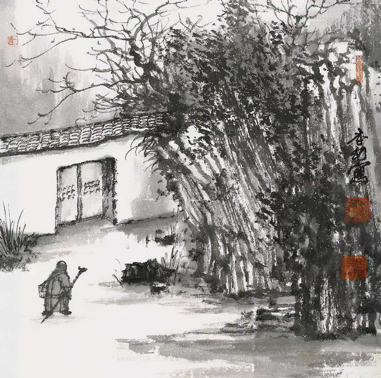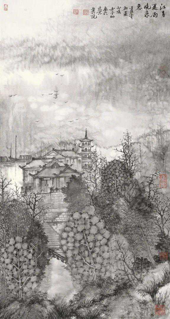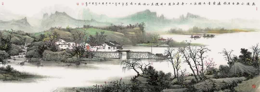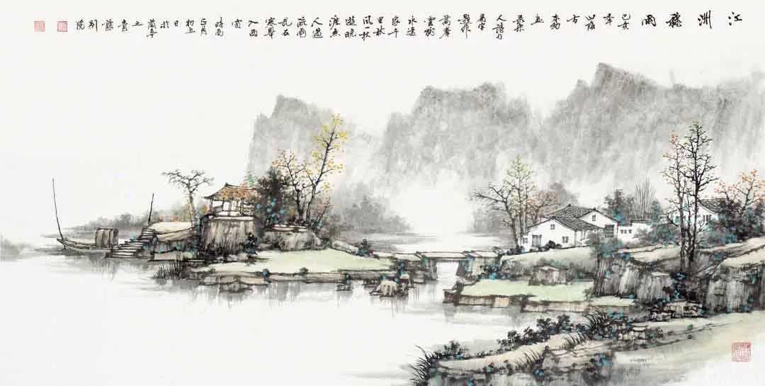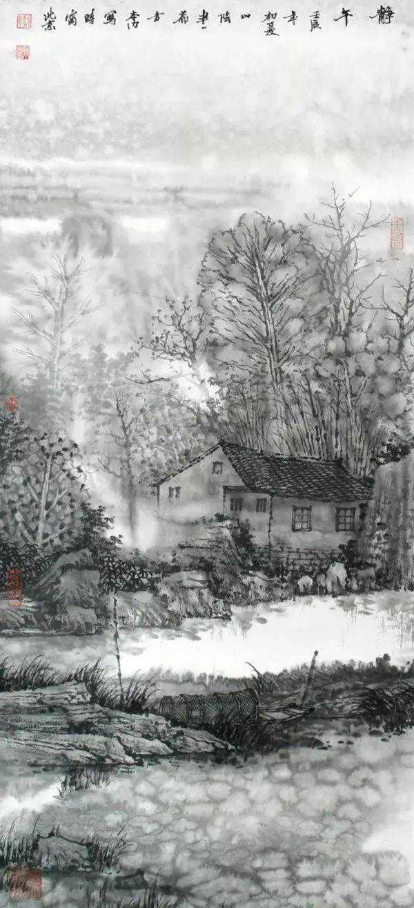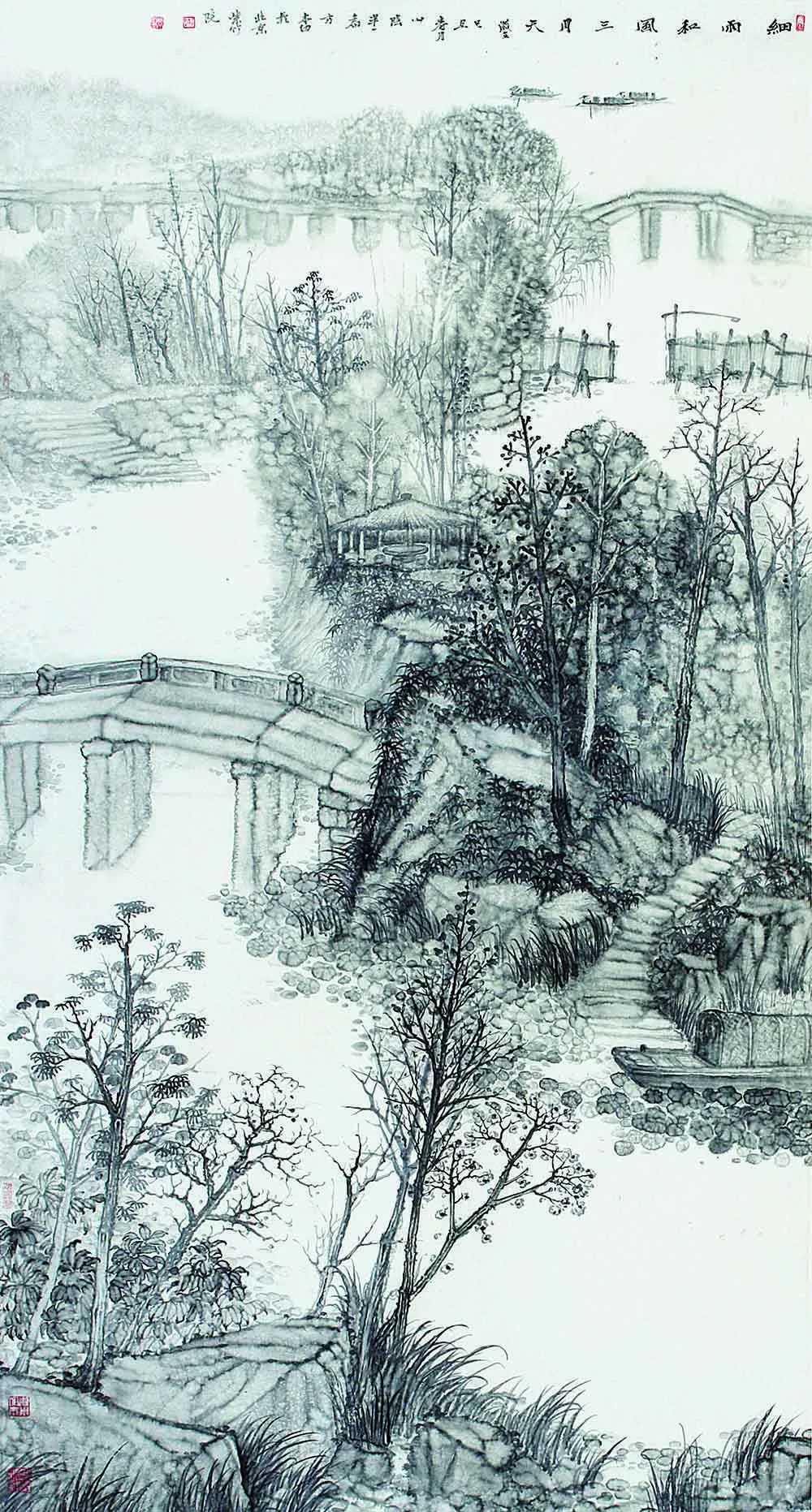 方本幼曾经用绚丽多彩的西洋绘画技巧,也研习过传统青绿山水的画法,但他发现最能表现水乡特色的还是传统的水墨画。