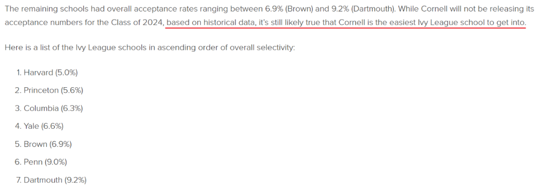 也就是说,康奈尔跟达特茅斯是八间藤校中率取率最高的两间。