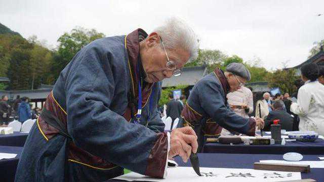 当天同时还举行了曲水流觞、“百名百幅庆百年”主题书艺交流笔会、兰亭书法论坛等。