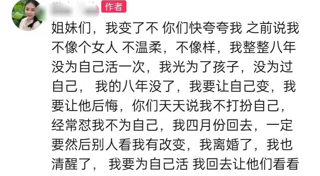 她终于从只会围着丈夫转的妻子,变成了独立且自信的自己。