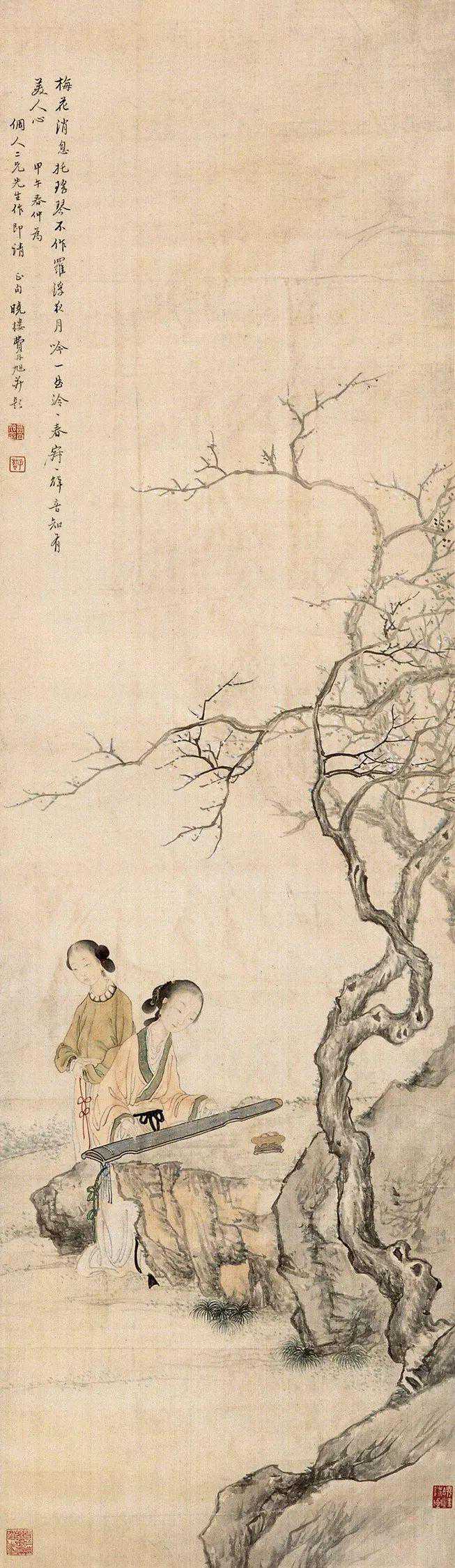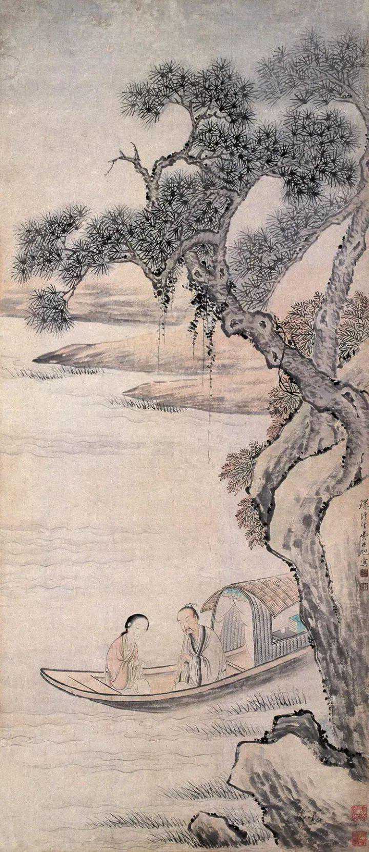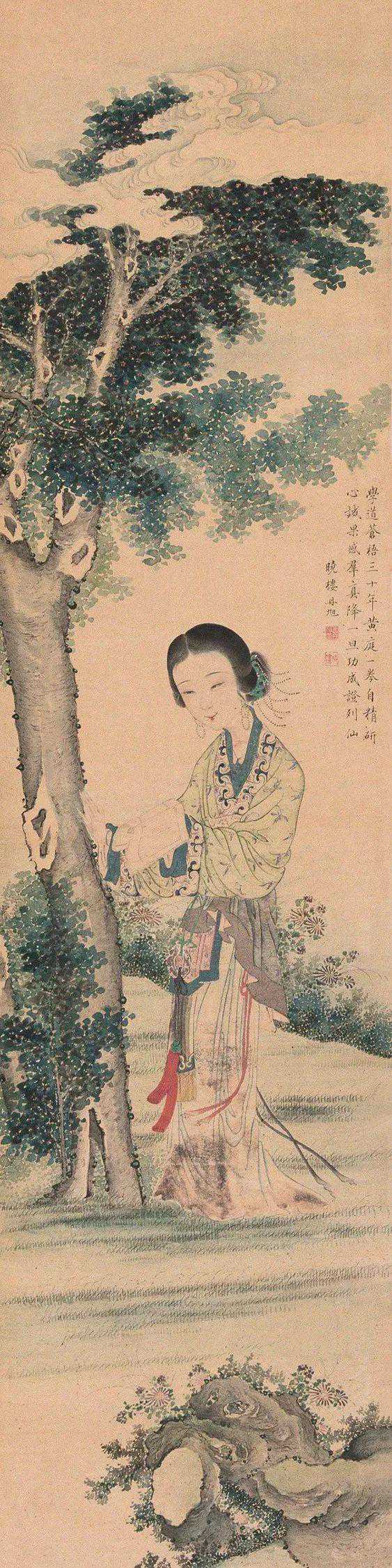 后期所作《果园感旧图》卷,藏于浙江省博物馆,技巧更趋成熟。也能山水,取法王翚和恽寿平。他的画风对近代仕女画和民间年画都产生了很大的影响。