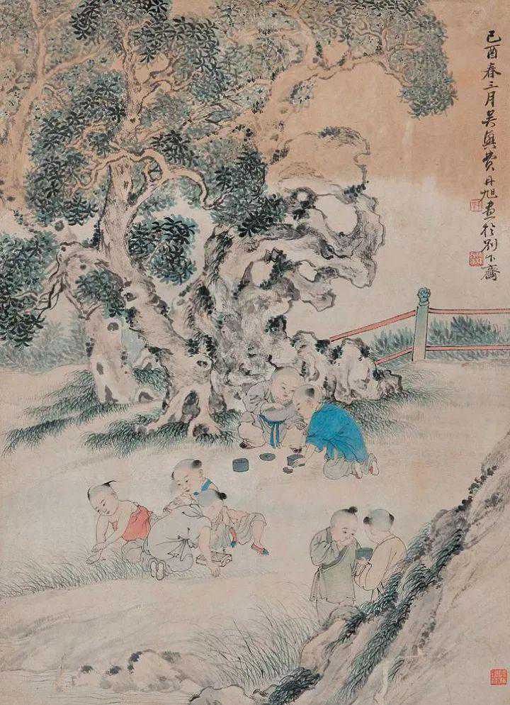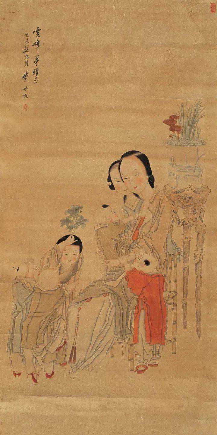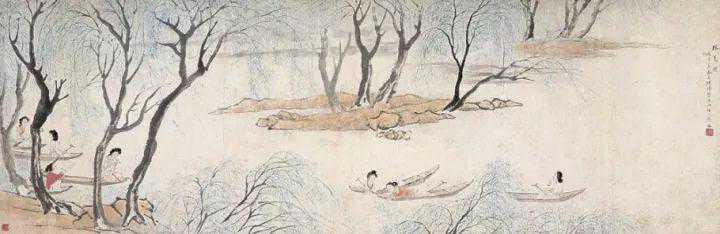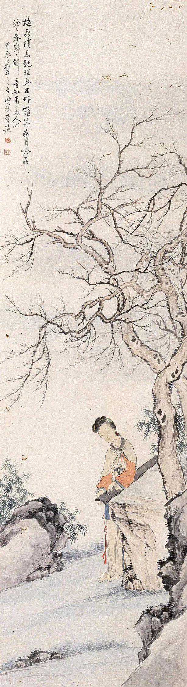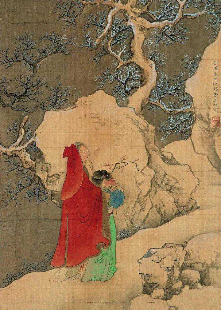 后期所作《果园感旧图》卷,藏于浙江省博物馆,技巧更趋成熟。也能山水,取法王翚和恽寿平。他的画风对近代仕女画和民间年画都产生了很大的影响。