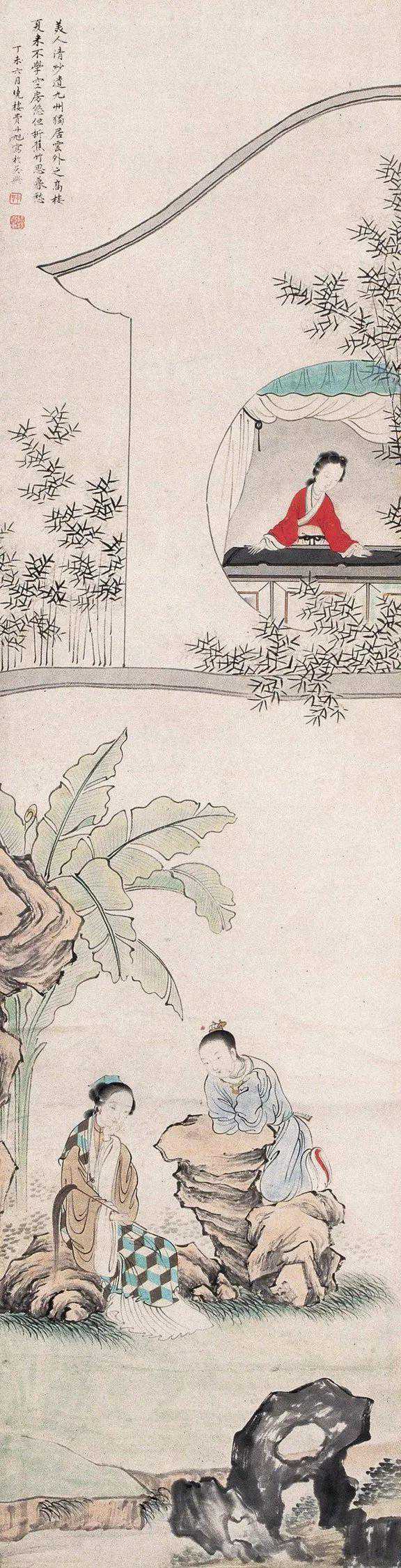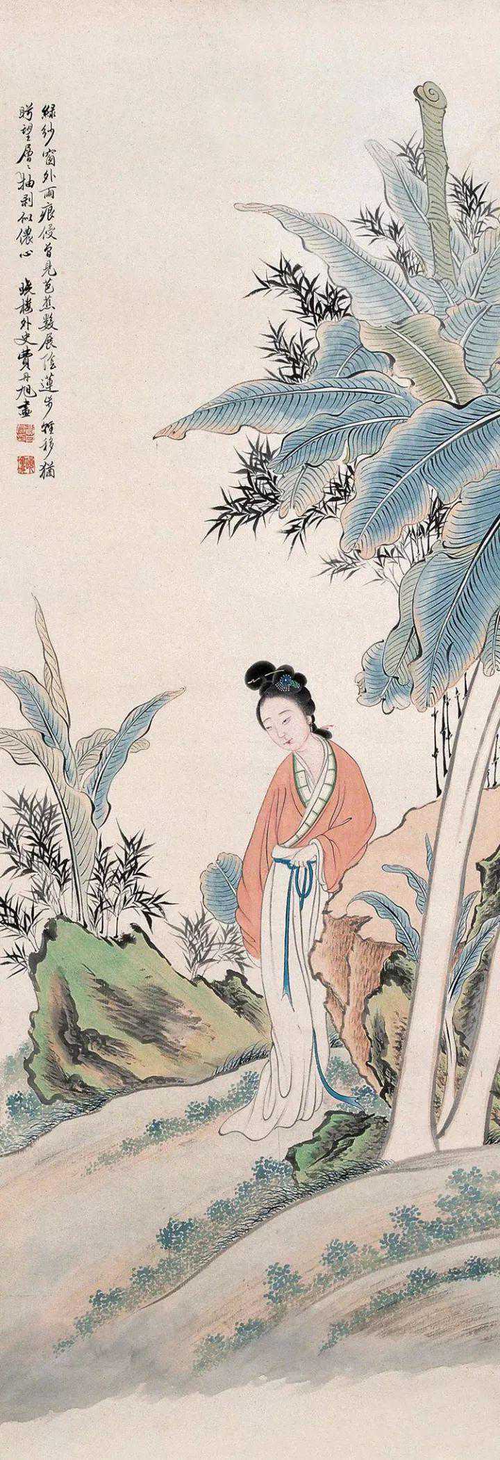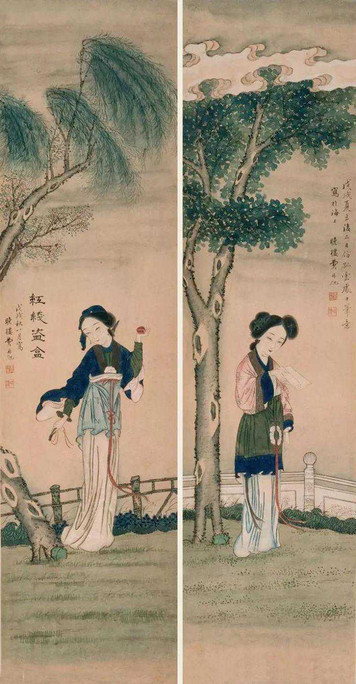 费丹旭以画仕女闻名,与改琦并称“改费”。他笔下的仕女形象秀美,用线松秀,设色轻淡,别有一种风貌。代表作为藏于故宫博物院的《十二金钗图》册,亦长于肖像画,画《红楼梦》十二金钗肖像。