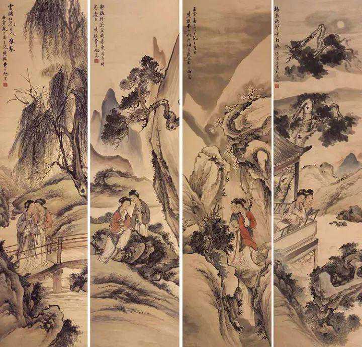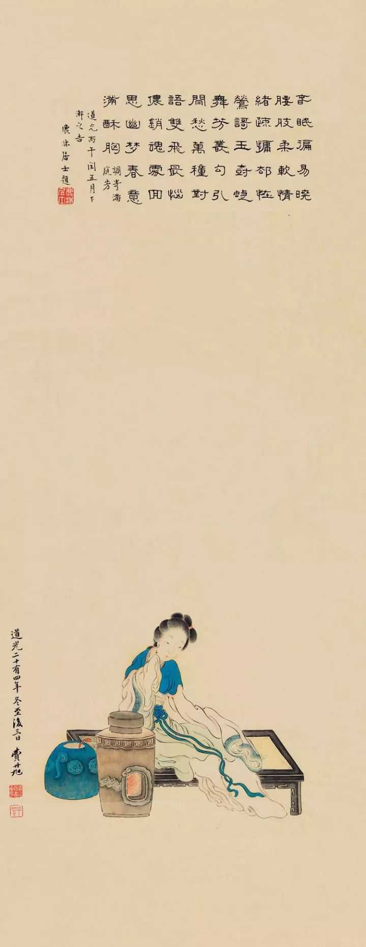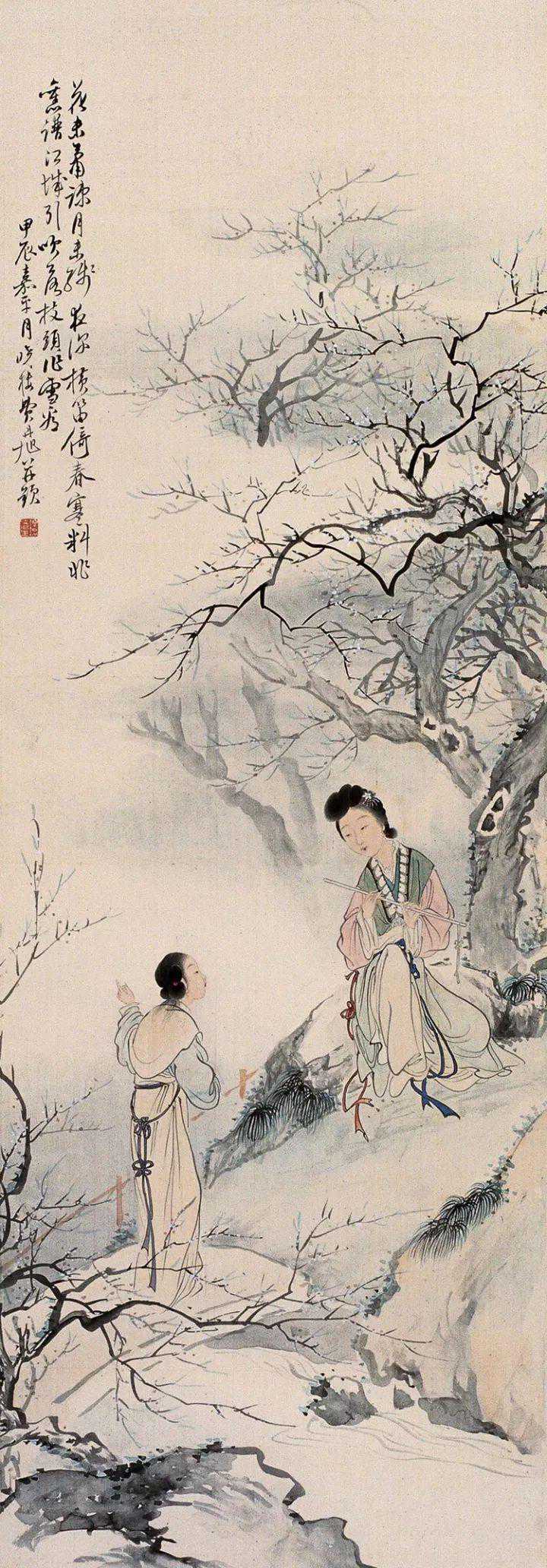 费丹旭以画仕女闻名,与改琦并称“改费”。他笔下的仕女形象秀美,用线松秀,设色轻淡,别有一种风貌。代表作为藏于故宫博物院的《十二金钗图》册,亦长于肖像画,画《红楼梦》十二金钗肖像。