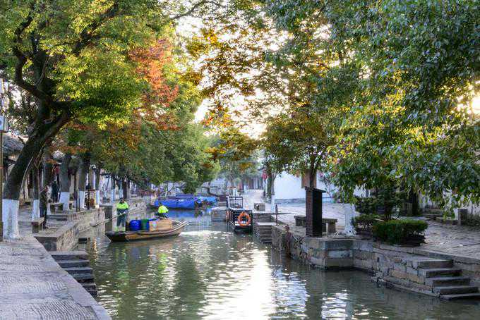 沿河青石驳岸,岸边和欢、女贞临波倒映,两岸筑有花石栏。河中船来船去、桥上人来人往,是同里古镇一道独特的风景。