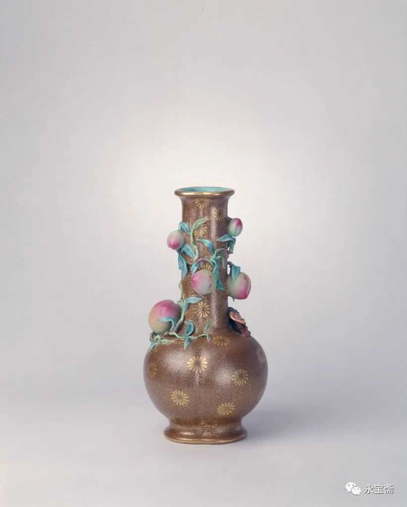 清乾隆酱地描金凸雕灵桃瓶故宫博物院藏