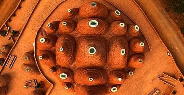 俯瞰这座建筑,再深入内部看看,完全是砖结构的建筑,没有使用一颗钉子和木材。通过几何结构原理,一块块砖交错搭建而成。真的有种小时候看万花筒的感觉。