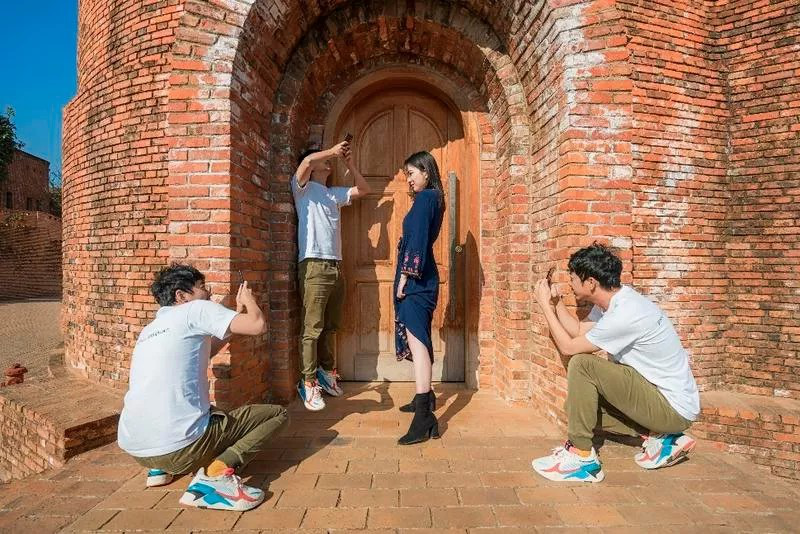 东风韵满山成片的鲜花,在绿波花海中,与矗立着一座座红砖砌成的酒瓶形状的城堡建筑,形成了柔美与坚硬的艺术组合。初步建成时就成了网红打卡地!