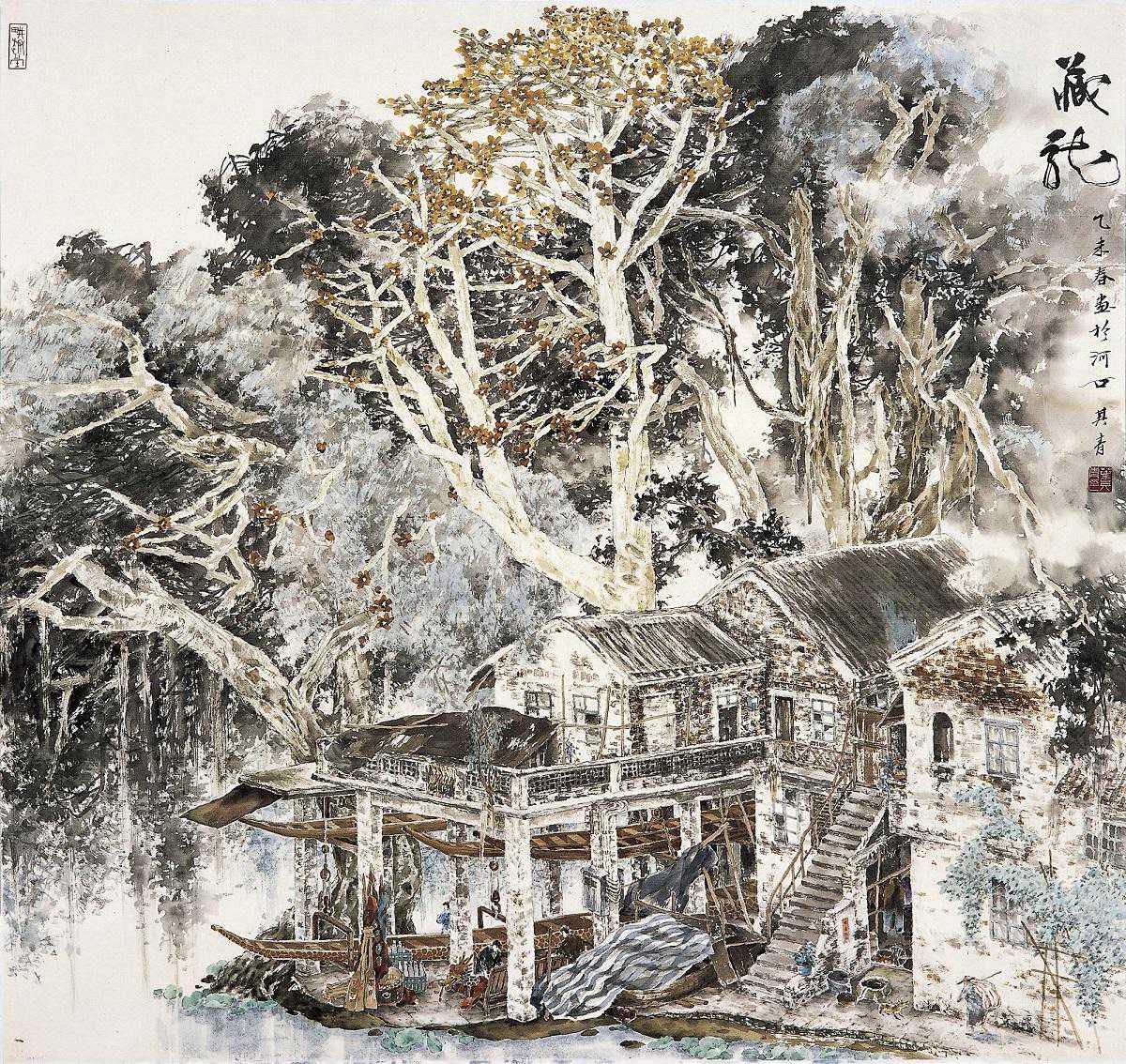如何用中国画的形式去表达、反映岭南水乡这一课题,是贯穿叶其青先生一路探索实践的宗旨。在历经几十年的积累、揣摩,并融合传统中国画与西画的技法后,以构图饱满、色泽清丽的鲜明艺术个性,奠定了他的创作风格。