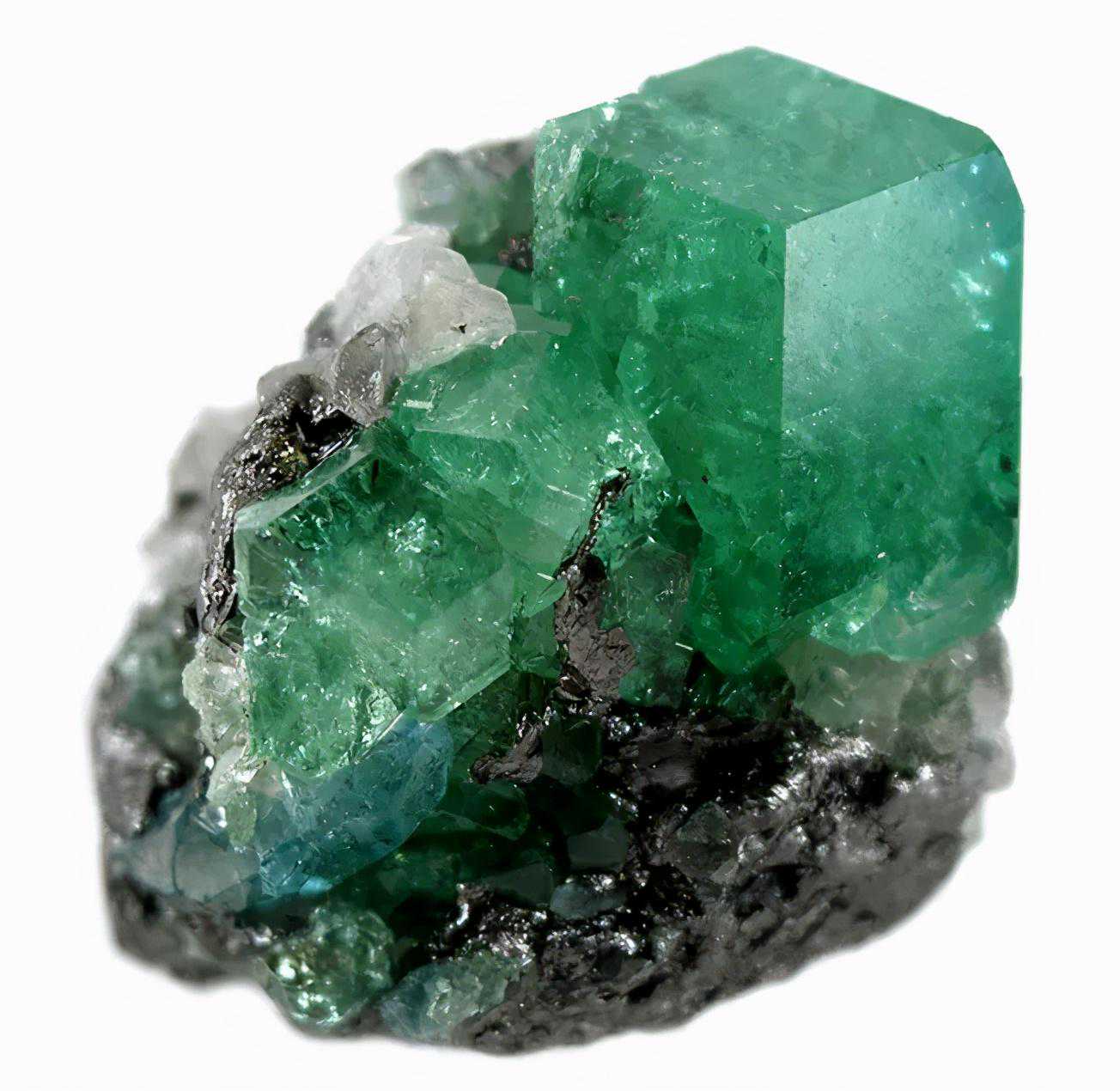 沙弗莱石的矿物学上叫作铬钒钙铝榴石,顾名思义,沙弗莱石是含有这两种元素的钙铝榴石,沙弗莱石的这种特别的绿色也是由这两种颜色共同作用导致的。