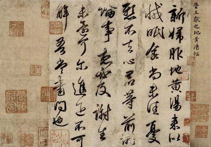 王献之《地黄汤帖》,又名《新妇地黄汤帖》《新妇帖》,乃大令草书名帖。现存墨迹本是唐人摹本,原珍藏于宋内府,高宗赵构题签。《淳化阁帖》卷第十收刻。经贾似道,明代文徵明、王宠、文彭,清代孙承泽、吴荣光、罗振玉递藏后,于1911年12月3日,通过文求堂归中村不折(1866—1943)所有。文曰:“新妇服地黄汤来,似减。眠食尚未佳。忧悬不去心。君等前所论事,想必及。谢生未还,可尔。进退不可解,吾当书问也。”