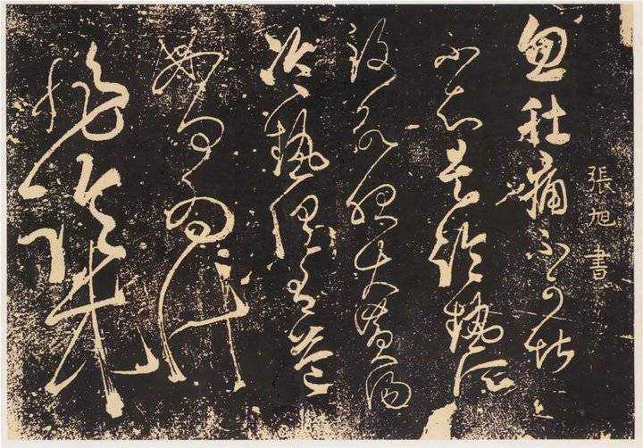 唐代出狂草大家张旭、怀素二人,在“二王”今草基础上有所发展。《肚痛帖》为宋嘉祐三年(1058)摹刻上石,传唐张旭书。全帖6行30字,似是张旭肚痛时自诊的一纸医案。文曰:“忽肚痛不可堪,不知是冷热所致,欲服大黄汤,冷热俱有益。如何为计,非□□。”明王世贞跋云:“张长史《肚痛帖》及《千字文》数行,出鬼入神,倘恍不可测。”此帖用笔顿挫使转,刚柔相济,内撅外拓,千变万化,神采飘逸,极有情趣。