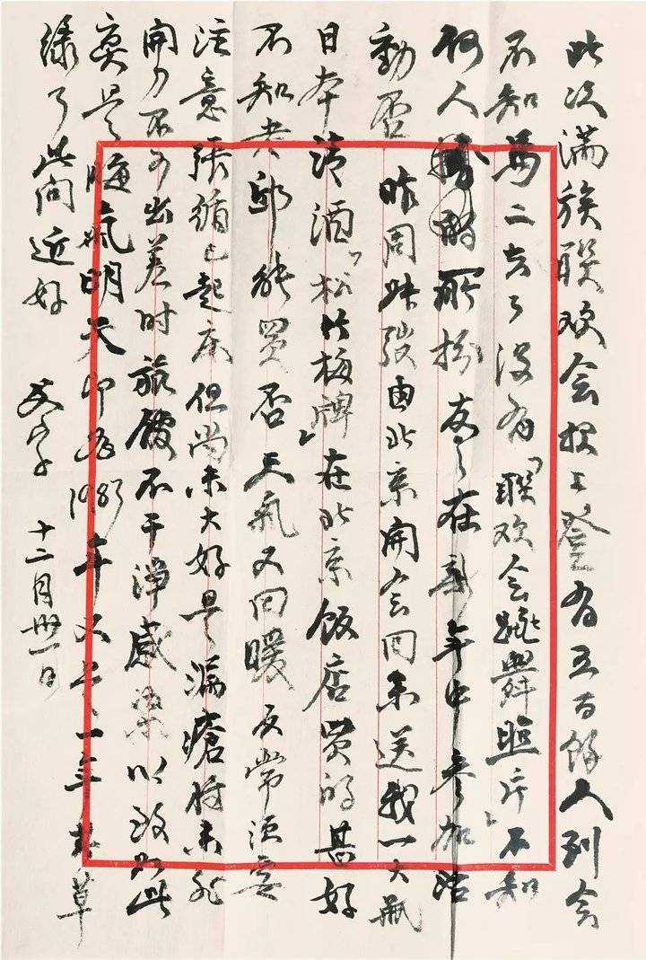 天津的大收藏家张叔诚先生也爱美食,其女张茂滢嫁给了溥仪的弟弟溥任,住北京鼓楼蓑衣胡同。张先生晚年经常与女儿通信,让她从北京购买食物带回天津。其中一封书信中说道:“昨尔大哥回津带来方袋面、火腿一块、咖喱角、花生酱、饼干等均收到。明日某全来京大约住一个星期即回津,望买酱羔菜一斤、熟疙瘩一斤,交他带来,其他食品不要。”信中又说道:“周叔弢由北京开会回来送给我一大瓶日本清酒,松竹梅牌,在北京饭店买的,甚好。不知老邱能买否?”