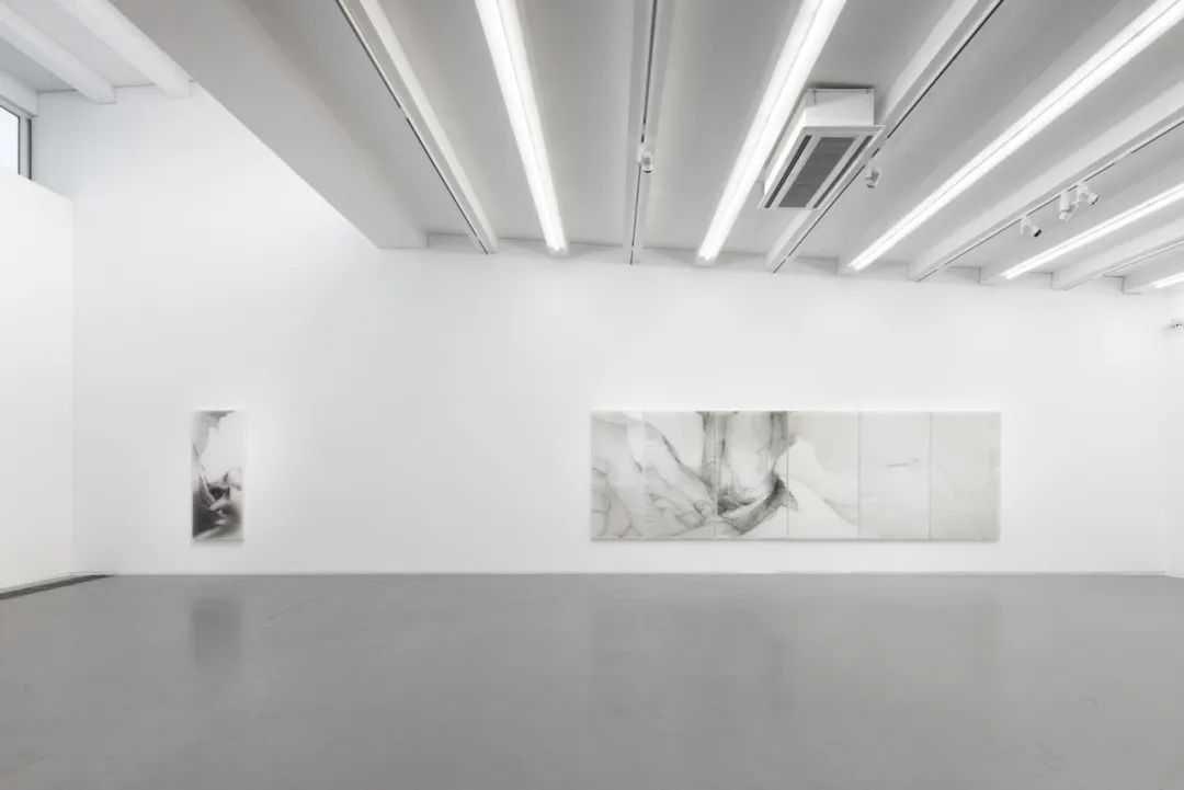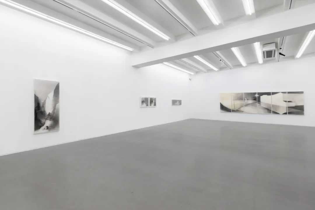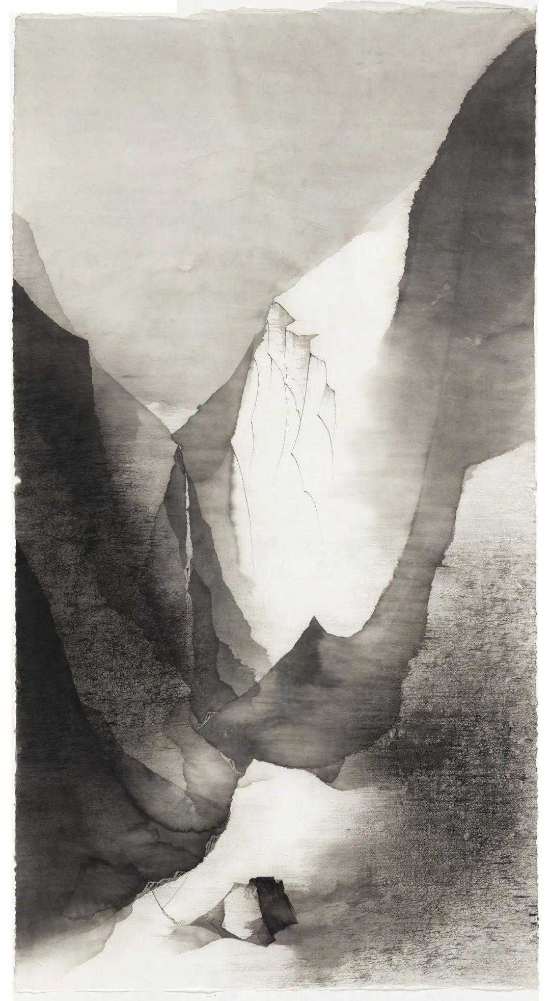 “以前我习惯从画面左边开始压黑,并在逐渐往右推的过程中,慢慢拉开对比。这次,新的山水作品我是从中间开始画的,左边用重墨处理的方式,这一启发来自一张五代山水画的灰调子的平面处理关系。”从五代古画中,艺术家发觉了一种经由灰调制造出的高古“平面感”。
