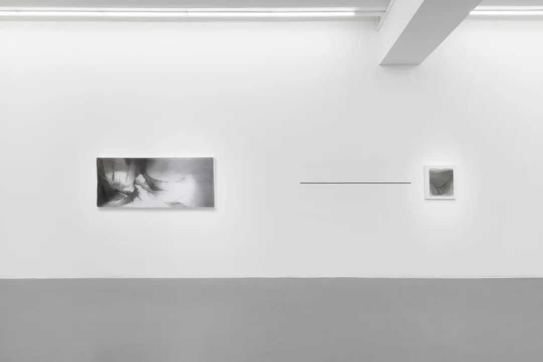 将皴法视作肌理与痕迹的创作视角,丰富多变的画面肌理,每一层晕染都会选择性地保留上一遍涂抹的痕迹。起草时的铅笔线条,炭笔的淡淡磨痕,这让画面观看体验拥有更为细腻的纵深结构,与更为丰富耐看的画面效果。沈勤意在将“绘画过程在二维的画面中叠加成为时间性的艺术”。