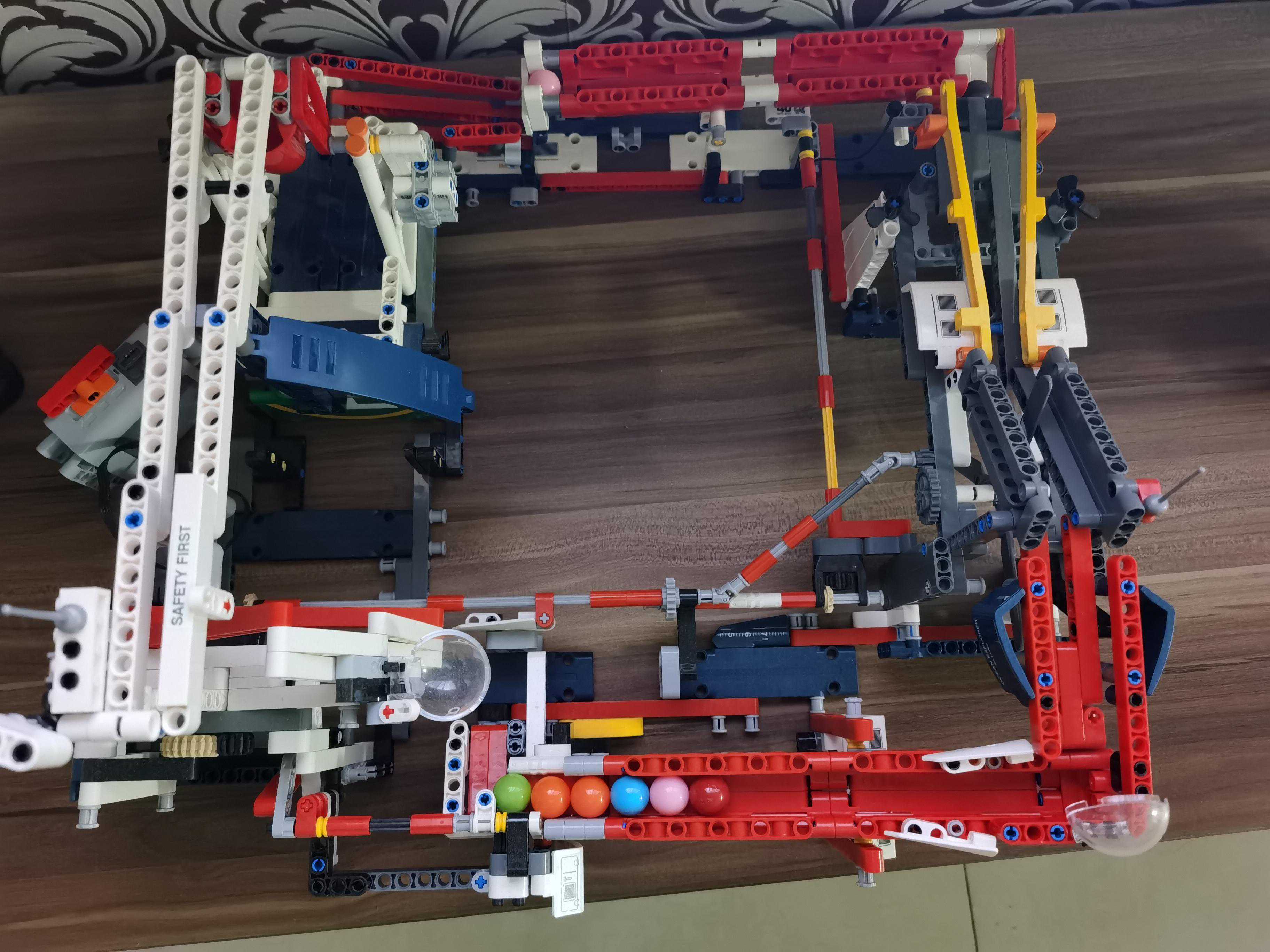 GBC的设计亮点也会更多,对乐高有一定的了解的玩家都应该知道,乐高颗粒类套装大部分是静态的,即使是科技类的套装,通过电器件提供动力,在没有遥控的情况下,大部分也是线性的,也就是说在马达朝一个方向运动时,完成的功能也会是线性的。而我们在做GBC的设计时,往往需要我们的模块在进行运输时可以做往复运动,而这就是设计的核心,这里面可能用到力与平衡,曲柄连杆结构等,搭配简单的传送方式(传送带,倾斜轨道)或者更加复杂的传送方式,比如阿基米德螺旋,升降交错等,就实现了百花齐放的GBC设计。