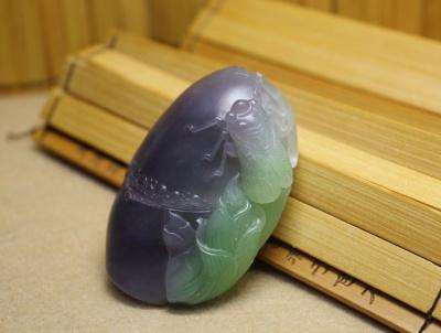 烟青料因为它自己独有的特征,很少被造假。好的烟青料要根据颜色,颜色比较浅的看起来比较发灰紫色,颜色比较深的料子是黑紫色。我把两种料子的图都发给大家可以比较一下。其实我个人还是比较喜欢这种颜色的,非常的有特点淡淡的紫罗兰看起来也很舒服。