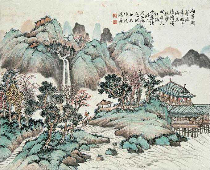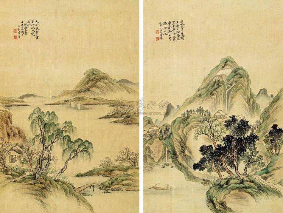 1964年秋,小曼又投入精力,为成都杜甫草堂画了四幅条屏山水。
