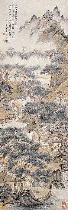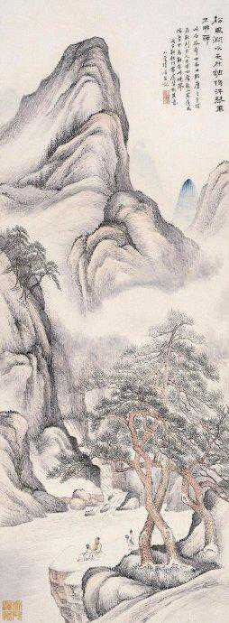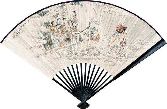 陆小曼钱振锽1931年作溪山行旅图行书成扇