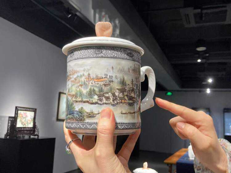 相关展品中,有新中国成立初期绘制的全套伟人瓷画像,历史的记忆扑面而来;粉彩“昌江通景”团结杯造型极富年代感,茶杯周身绘制了景德镇昌江风貌,杯盖顶端是一个紧握的拳头;“世界和平”颜色釉瓶一对,完美体现了新中国成立初期中国人民对世界和平的向往,瓶身采用了堆白工艺,塑造了和平鸽与祥云图案,犹如浮雕,瓶把手上又有两只灵动的和平鸽雕塑,作品的年代感和艺术质量俱佳。