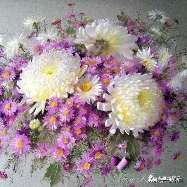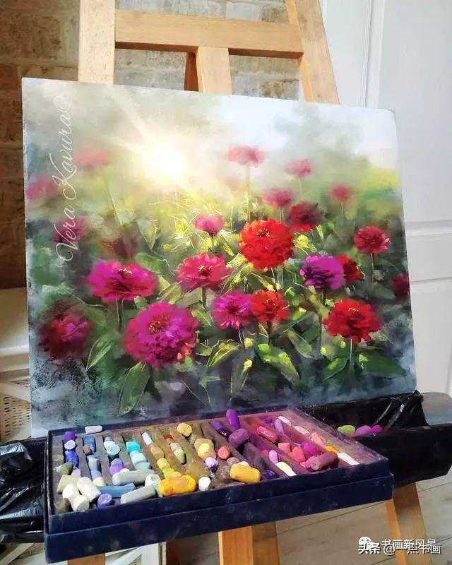 色粉笔画,又叫粉彩画。主重色彩,鲜艳无比色彩静物花卉,一束束一朵朵色泽鲜艳明亮,立体效果诱人花朵,感觉鲜花,极其丰富色彩搭配漂亮。一朵朵鲜艳亮丽可爱玫瑰花,迷人极致。