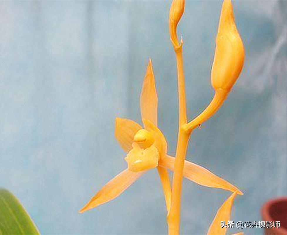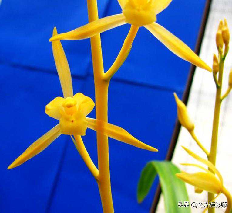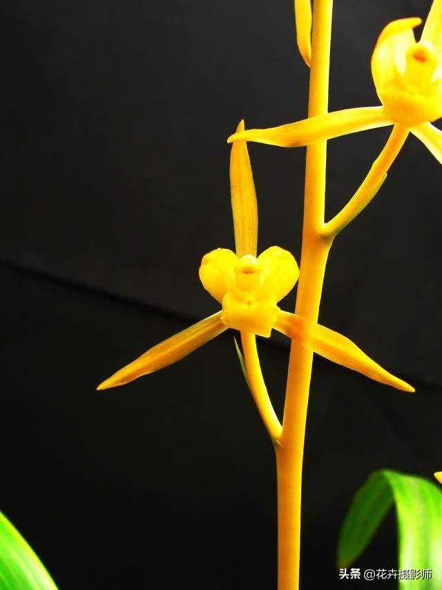 金公主的花瓣很窄,只有普通兰花的一半左右,因此给人一种纤细娇美的感觉,也有“画龙画虎难画骨”的感觉。金公主在一根茎上可以开出10朵以上的花。这个数量的花绝对是兰花中最好的之一。如果一盆里有很多苗,一次就能开出几十朵花,非常壮观。其花茎高50多厘米。而且每次开花的时候,都必须要展示一下。