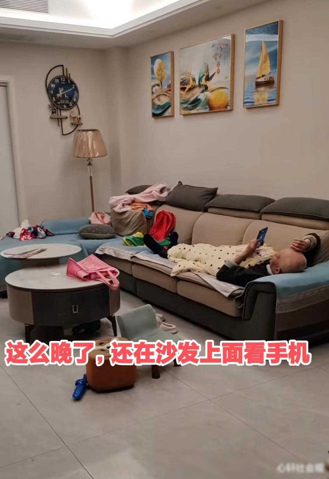 就在广东某家庭,一场小小的家庭矛盾便因为手机而产生了。老人躺在沙发上面看手机,儿媳妇感到不满,因为她觉得老人应该更多地关心家庭和与家人相处,而不是整天沉浸在手机世界里。