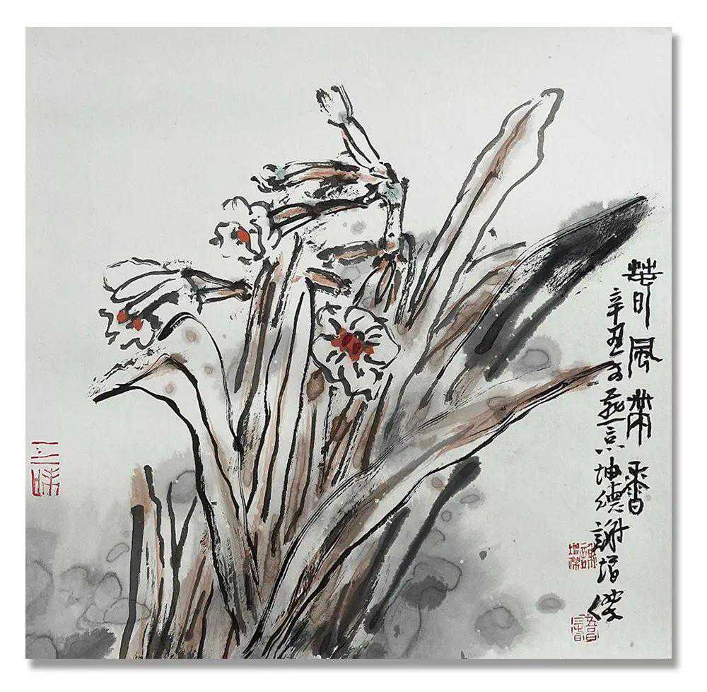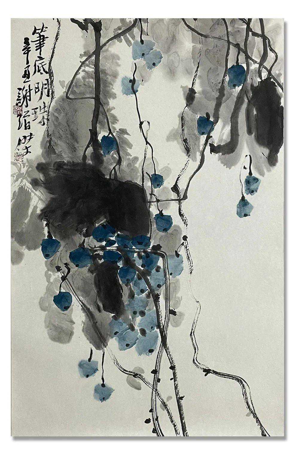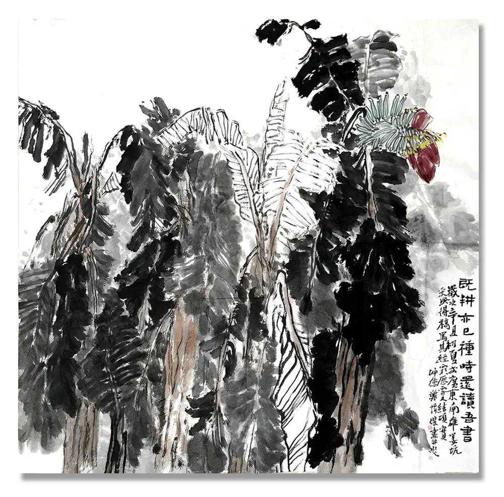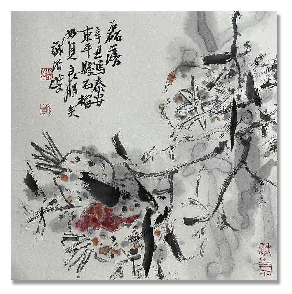 在技法的运用上,我始终坚持有法与无法的统一。我选择的是大写意水墨一路画法,因而在物象的造型上,我大胆地打破了一般意义上的“应物象形”规范,以独具匠心的取舍与适当的夸张、变形,使花鸟形象在“繁”与“简”、“写实”与“写意”的特征之间维系着一种微妙、恰当的和谐统一关系。我的画法既以现实对象的外在形貌、内在结构以及变化规律为根据,又以大写意花鸟离形得似、以简为尚的意象化造型原则为圭臬,讲究“六法”却又不愿被“六法”所束缚,因而在有法与无法之间,我力求达到一种动态化的审美平衡。我想,这或许就是我在借鉴与创新之间探索前行的艺术精神。这种艺术精神,还被我发挥到画面构图与笔墨运用上。我的画面结构虽然不乏写生而来的现场感,但物象的组织规律主要以“计白当黑”的原则为旨归。清代书法篆刻家邓石如提出“密不容针,疏可走马,计白当黑,奇趣乃出”的字法空间观念,庄子也有“唯道集虚”的空间美学思想,因而,在画面空间的营构中,我基本打破了视觉常规,力求以虚实、开阖、疏密、聚散的辩证规律来处理物象之间的往来钩锁、高下低昂、起承转合。在笔墨运用方面,我追求鲜活、率真、稚拙、厚重和苍辣的审美趣味,也不乏隐忍的疏野与粗犷,同时融入了自己因长期临池而来的书法意识与金石气韵。我始终认为,笔墨是大写意的核心和根本,离开笔墨奢谈中国画的写意精神,犹如皇帝的新装一样自欺欺人,二十世纪以来的“美术革命”和“中国画改造”风潮,几乎将大写意精神与中国画的民族特色丧失殆尽,在不断呼吁传统文化复兴与民族文化自信的当下中国,笔墨理应回归其艺术本位。可以说,我的大写意笔墨,即是力求彰显我的所思所想以及我一贯的审美理想与追求,它虽然可能未臻成熟,但其生机翕含辟弘,诚为中国画守正创新之大道。对此,我一直深信不疑。