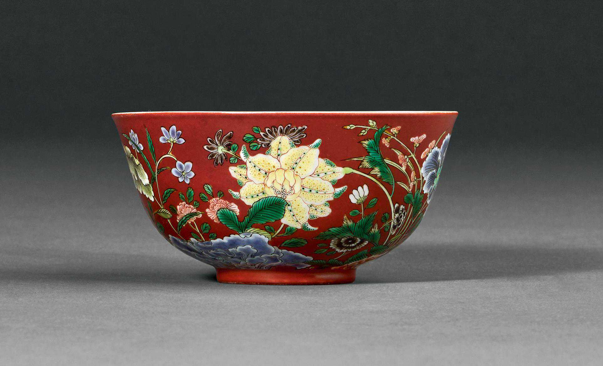 清雍正红地珐琅彩九秋图碗高11.2厘米