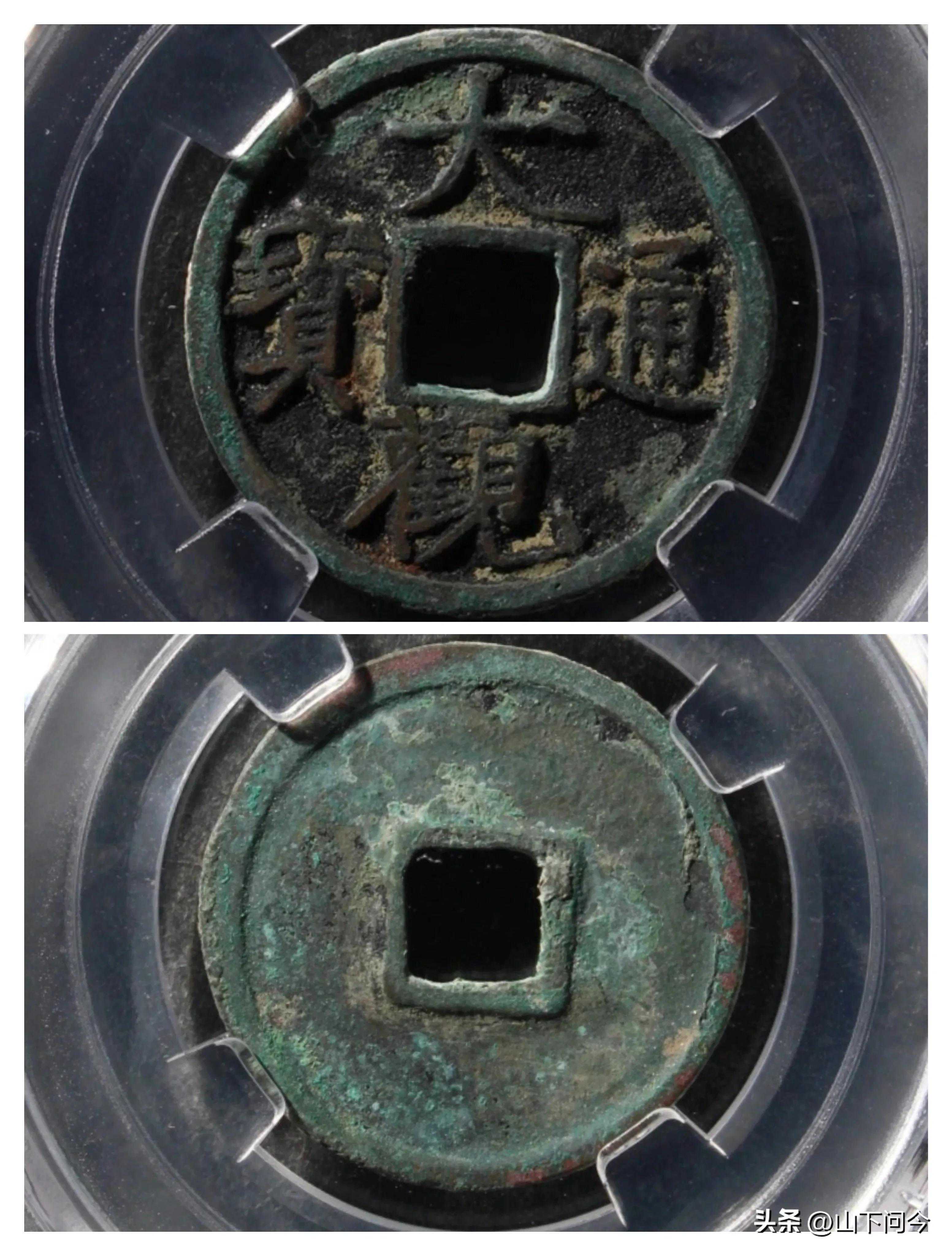 身为十级币,短尾大自然代表的就是量大、价低。但是,不学不行啊,此版钱币广穿,“大”字的一撇稍微短一些、接到了穿口右上角,“通”降的比降通还厉害,走之底向下垂。这样的描述下对版,实际上出错率是很低的。当你区分了短尾大,短尾大寄郭的细小差别自然区分起来不在话下。