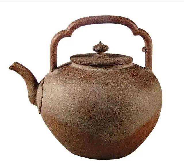 18.“康熙年造”款黑砂铜提梁壶,清光绪作品。这类壶在宜兴烧好后,到烟台去烧黑。